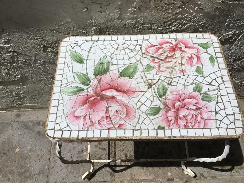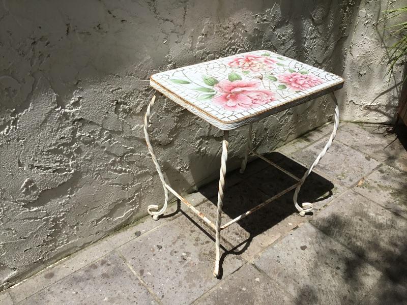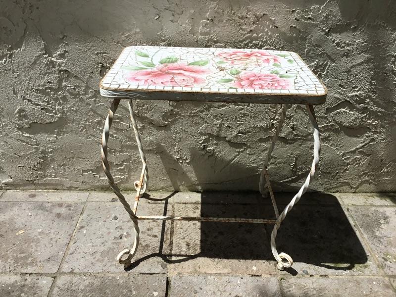 Tile top wrought iron table. 20”w x 14”d x 22”h