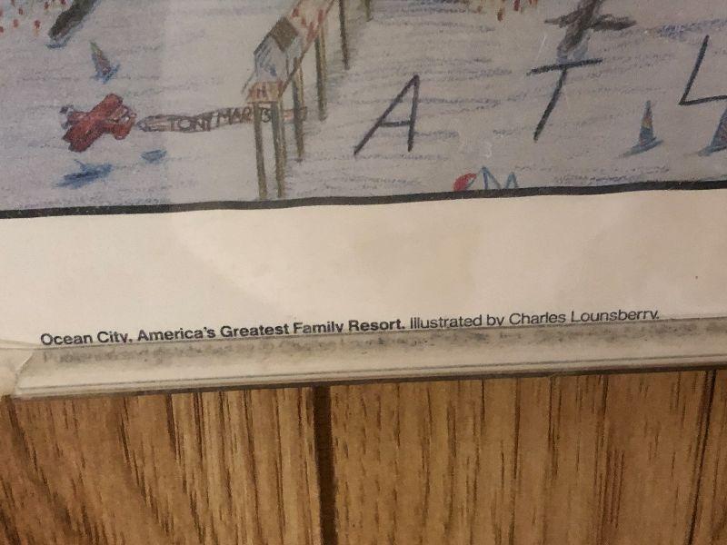 Charles Lounsberry Vintage Ocean City NJ Poster. This does need to be reframed for a fresh look, or to keep vintage it could stay as it. Great colors. Please see all pics for size and condition. Thank you for looking and have fun bidding.