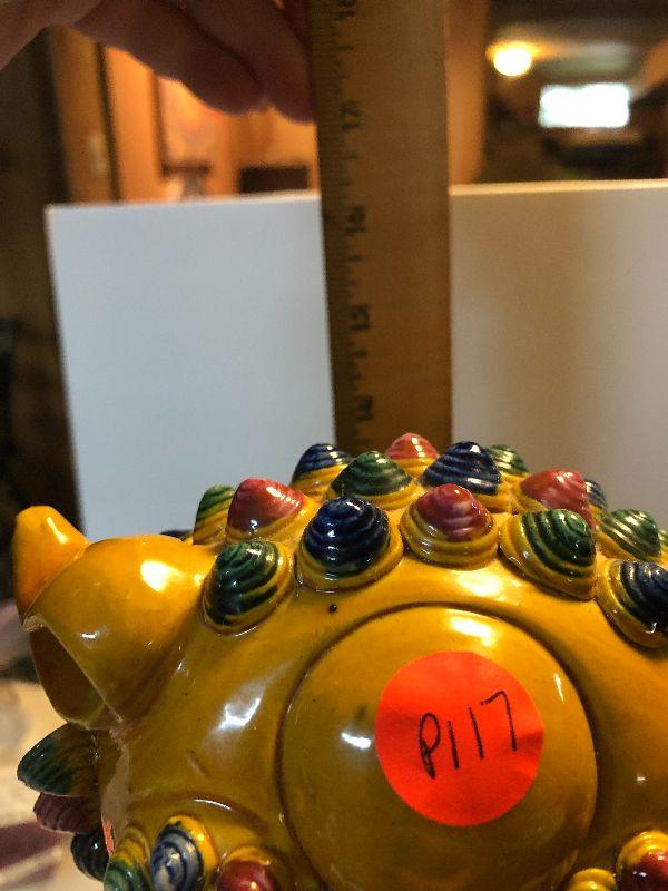 This is even cooler in person. This looks to be a glazed ceramic almost Majolica in style. Colors pop and unique in size. Please see all pics for what is included in this lot, the condition of the items in the lot, and sizes of items if measurements taken. Thank you for looking and have fun bidding.