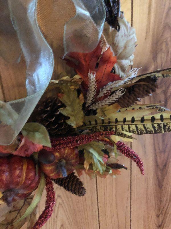 P119: Pheasant & Pumpkin Fall Wreath Burlap Bow