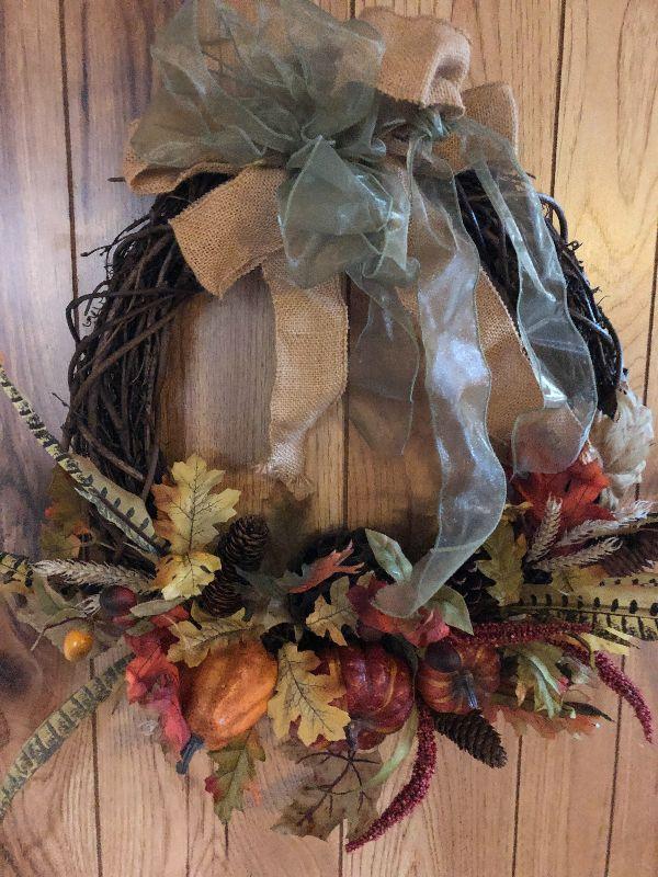 This is a very pretty wreath that is perfect for the fall! Please see all pics for what is included in this lot, the condition of the items in the lot, and sizes of items if measurements taken. Thank you for looking and have fun bidding.
