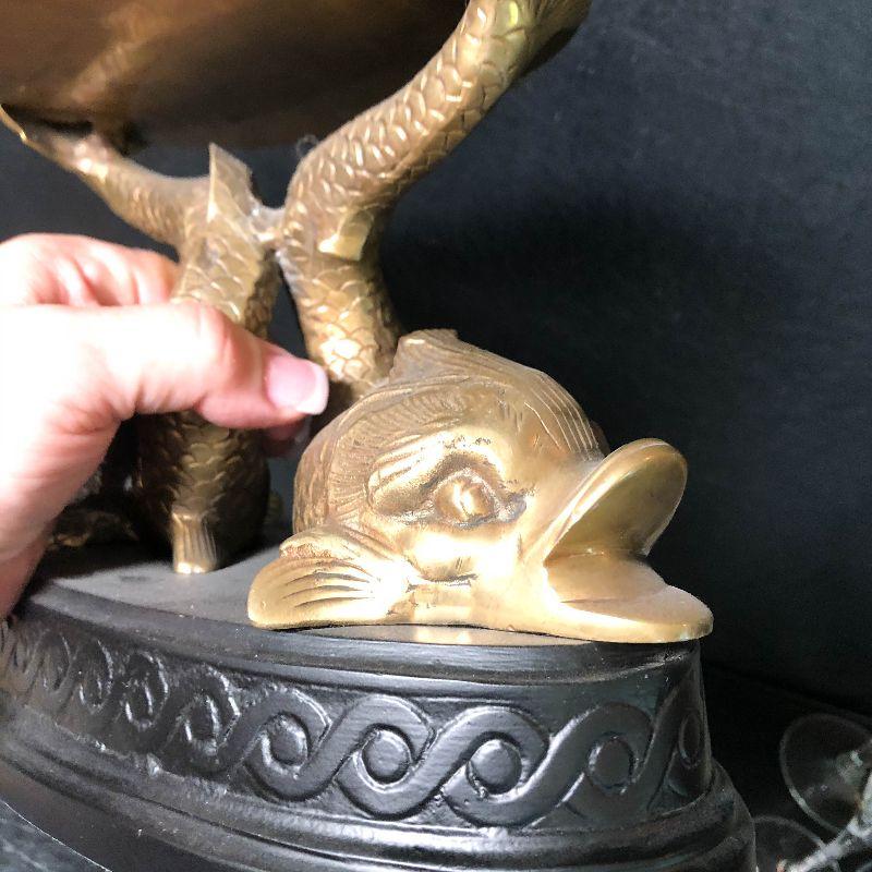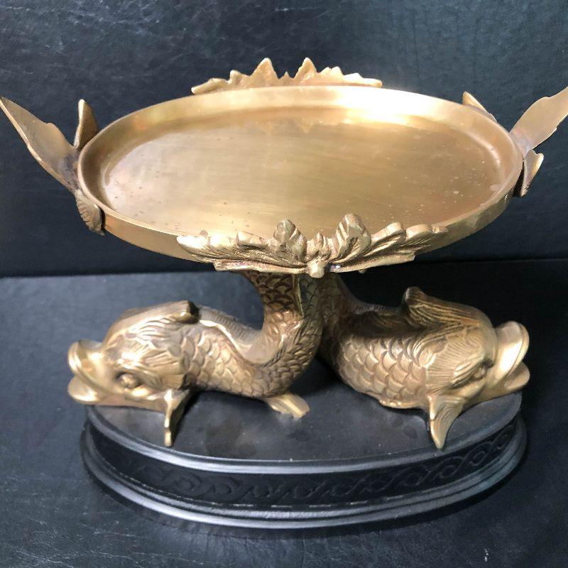P12: Vintage Castilian Imports Brass Dolphin/Koi Fish Compote/Stand!