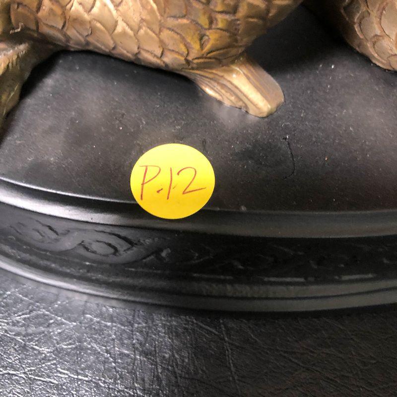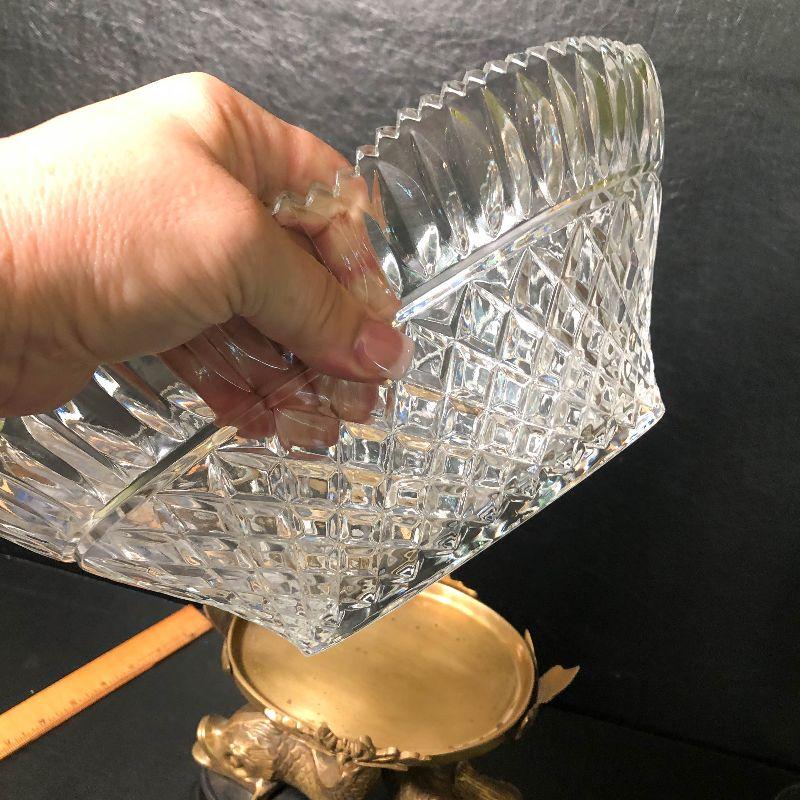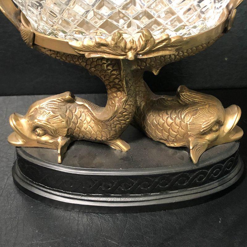 This piece is mulitfunctional. You can use with the glass compote or as a stand! Brass and Cut glass, with the brass koi fish accents! Unique piece! Please see pics for sizing and condition
