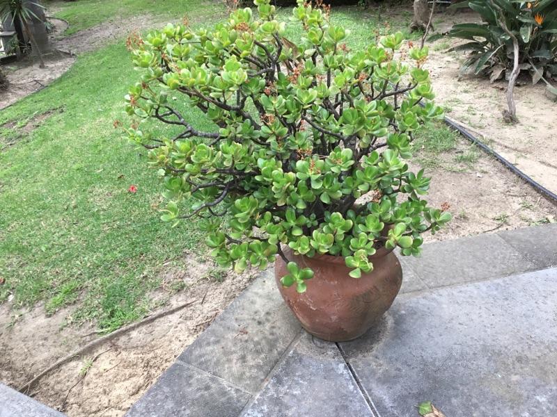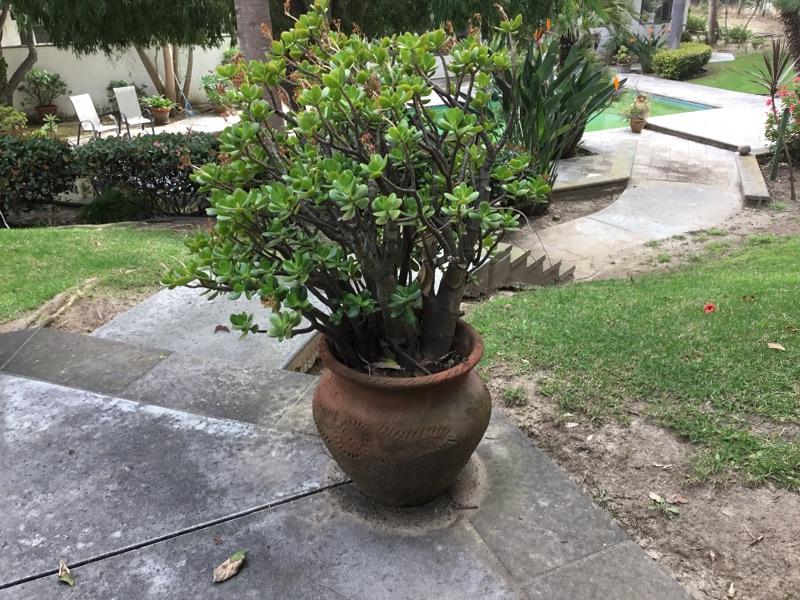 Large terra-cotta pot with jade plant. The pot stands 16 inches tall overall height with plant is 48 inches