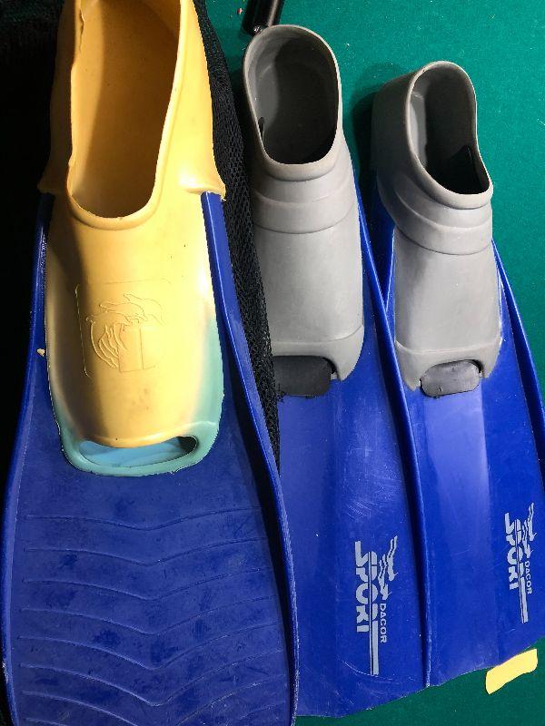2 pairs of flippers. One is XS and the other is 11/12 with case. Please see all pics for what is included in this lot, the condition of the items in the lot, and sizes of items if measurements taken. Thank you for looking and have fun bidding.