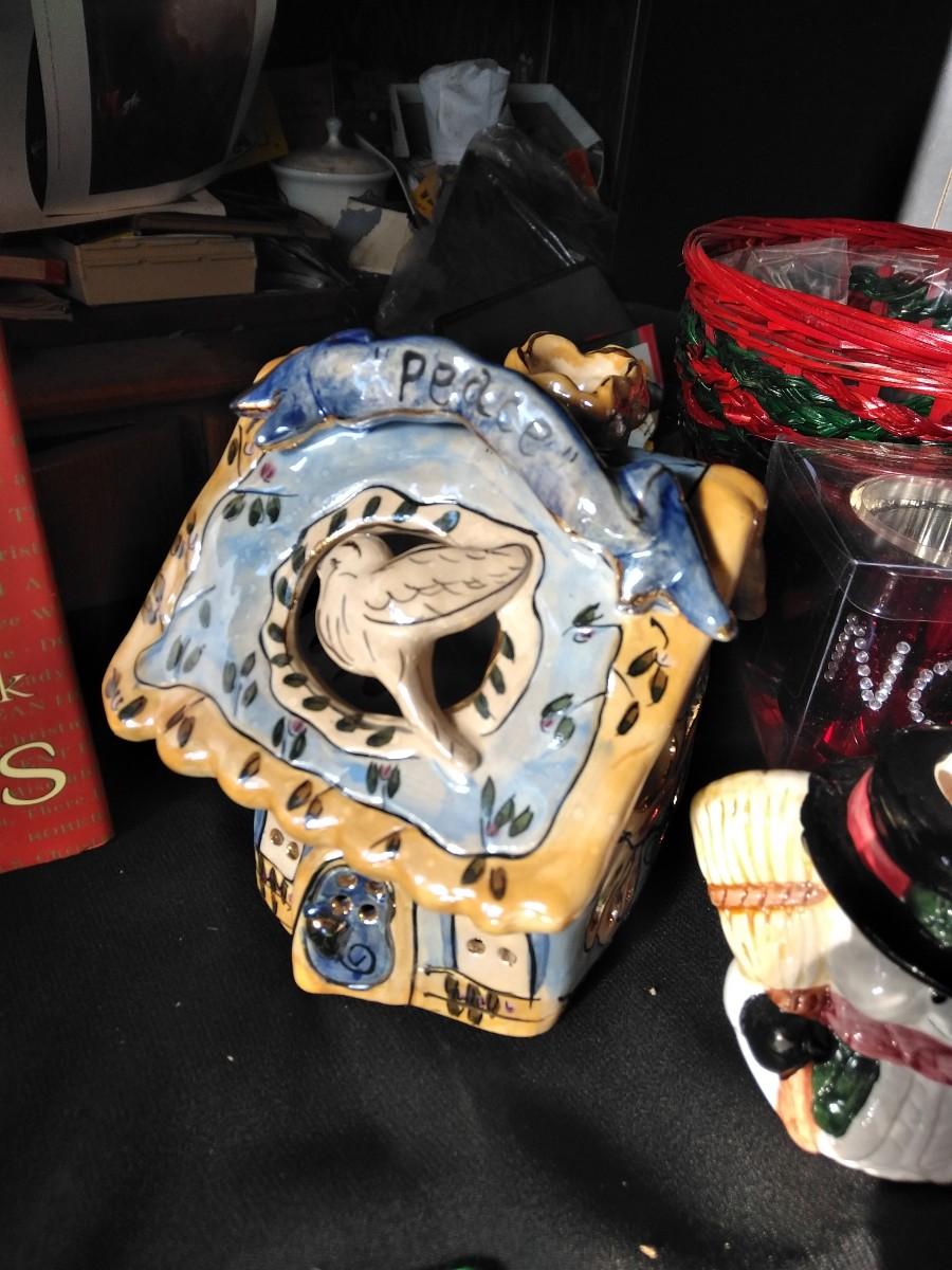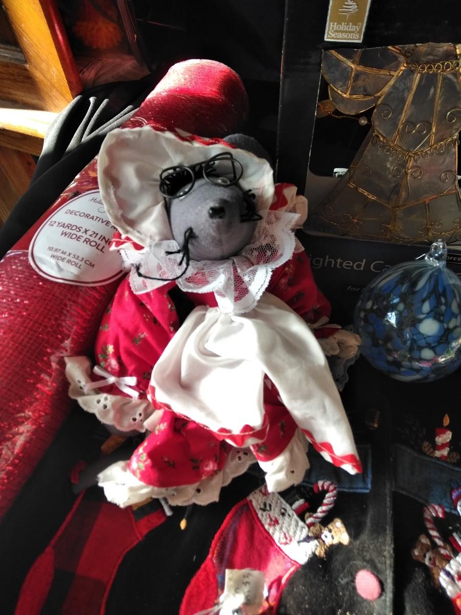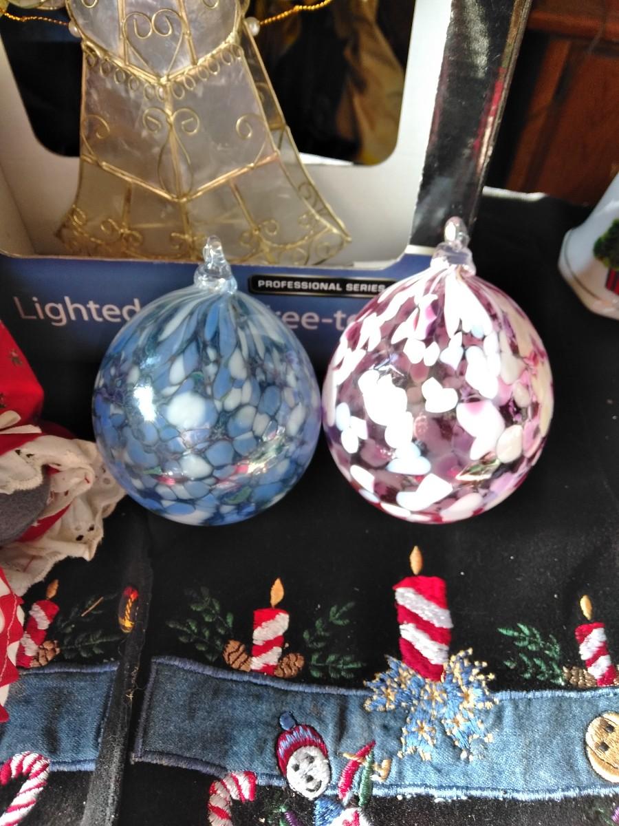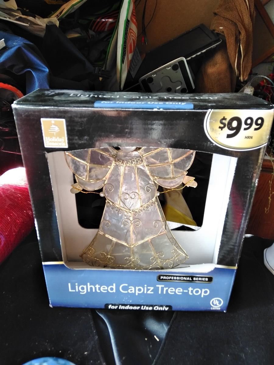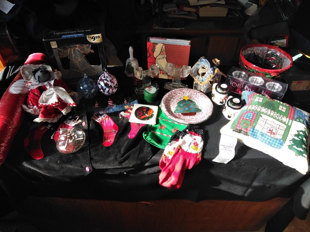 HOLIDAY RED DECORATIVE 12 YARD X 21" MESH ROLL, CHRISTMAS MOUSE, VEST WITH CHRISTMAS SCENE, LIGHTED CAPIZ TREE TOPPER, GLASS DECORATIVE BULB ORNAMENTS, CHRISTMAS DISHWARE, SNOWMAN CANDLE HOLDERS AND MORE