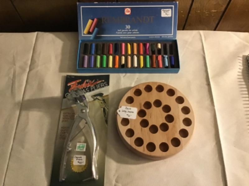 #p14. Soft pastels, canvas pliers, paint Lazy Susan
