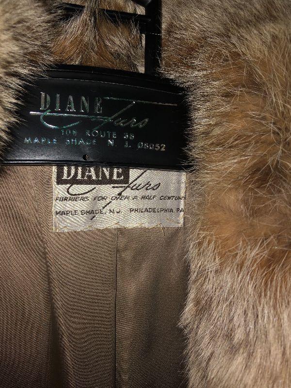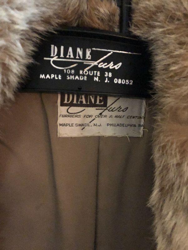 This is a beautiful fur by Diane Furs. It is unmarked in size and fur type. Fits 4-6 in size. This coat is beige, grey, and soft browns. Please see all pics for what is included in this lot, the condition of the items in the lot, and sizes of items if measurements taken. Thank you for looking and have fun bidding.