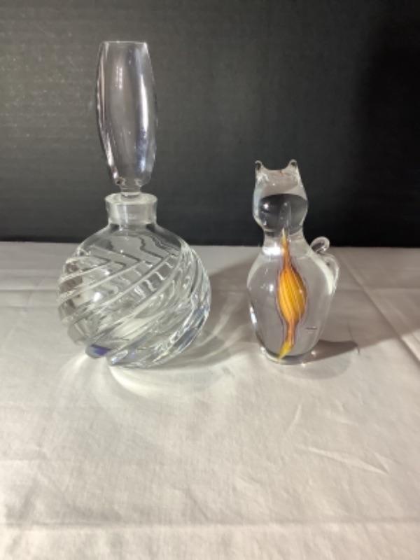 P1434 Signed Art Glass Cat Figure with Perfume Bottle