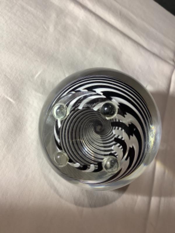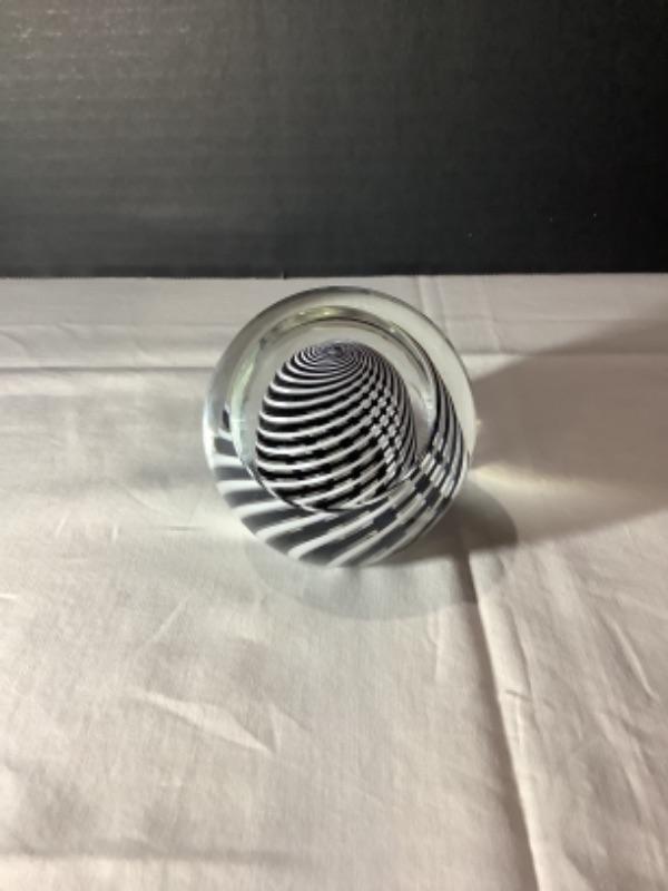 P1441 Signed Paul Harris Black and White Spinner Art Glass Paperweight