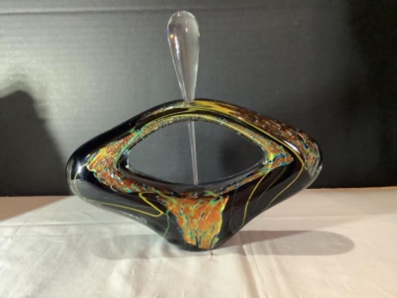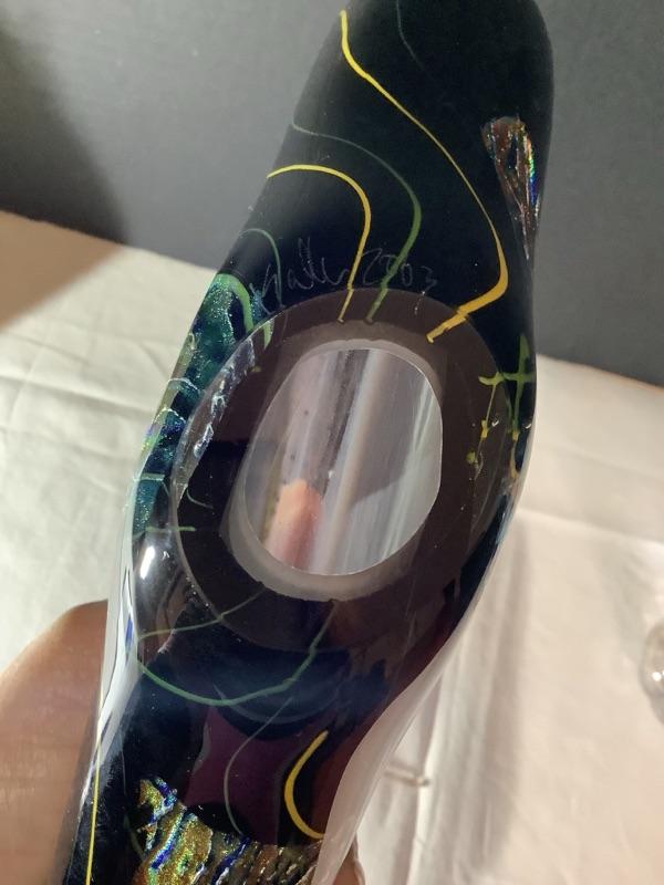 P1459 Artisan Signed Dichroic Art Glass Bottle