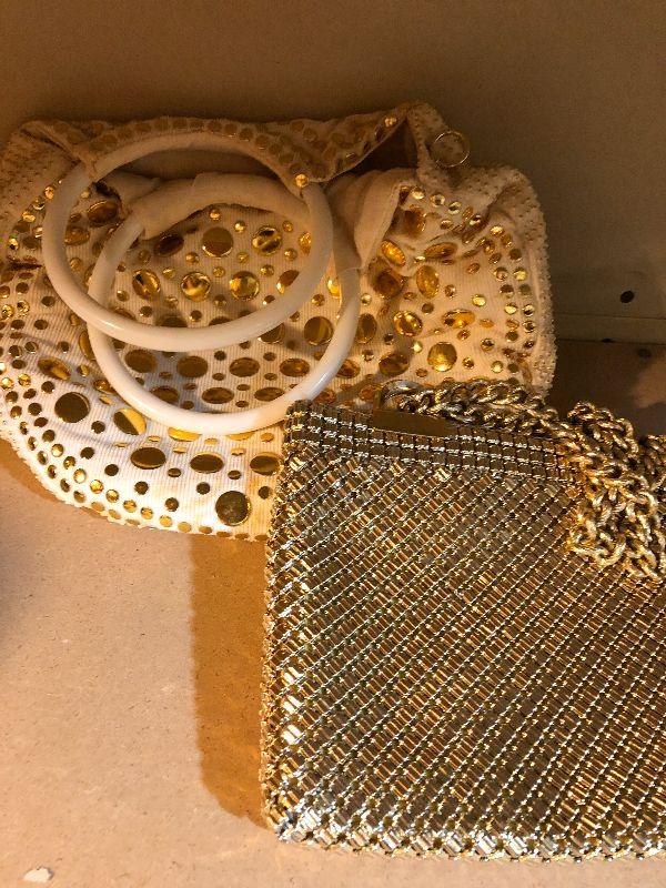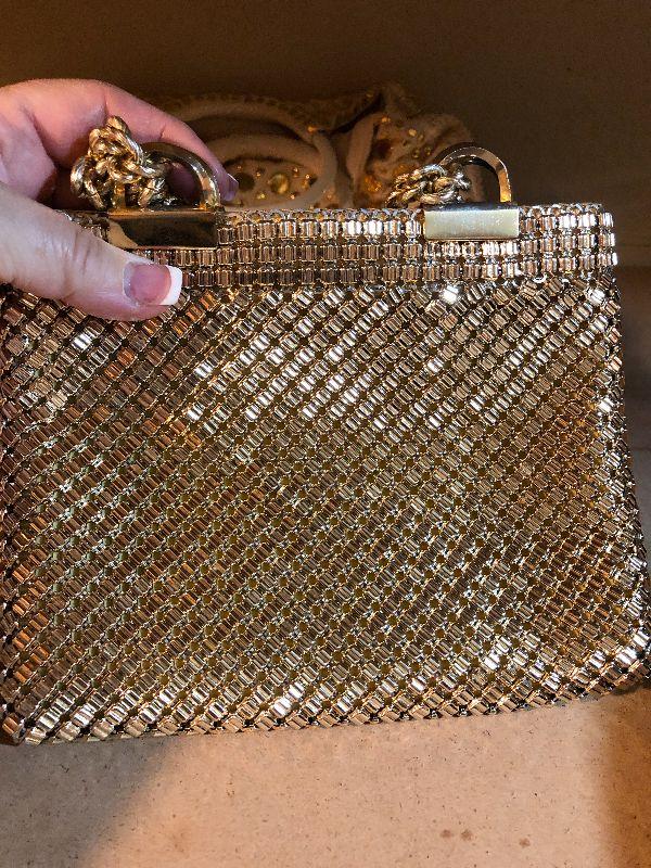 This is a gorgeous vintage hardbag by Whiting and Davis. Please see all pics for what is included in this lot, the condition of the items in the lot, and sizes of items if measurements taken. Thank you for looking and have fun bidding.