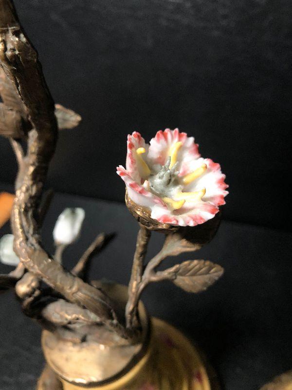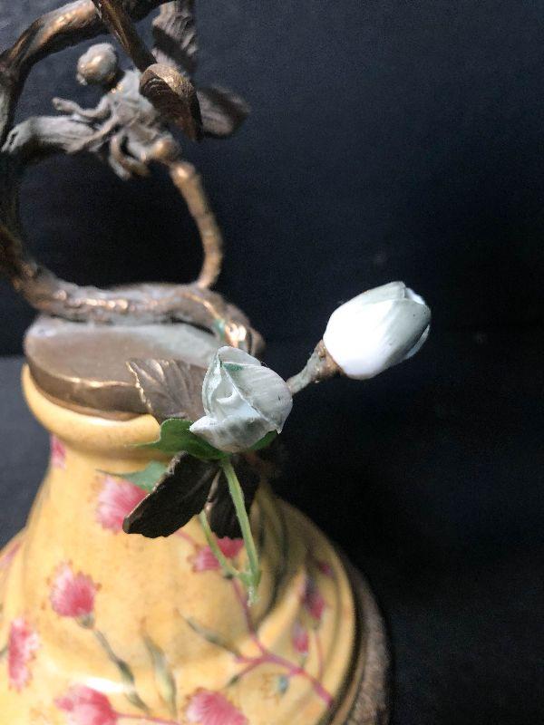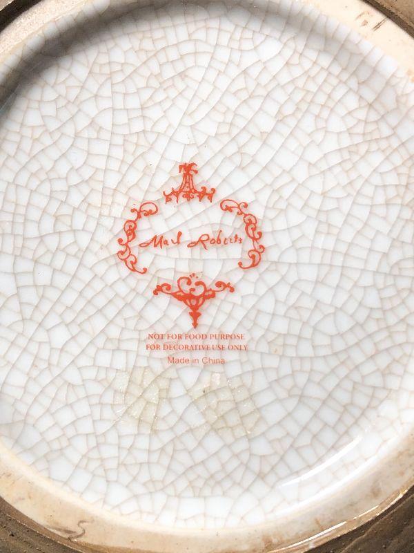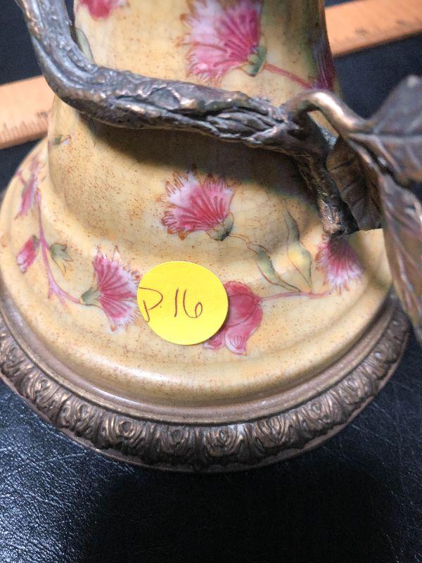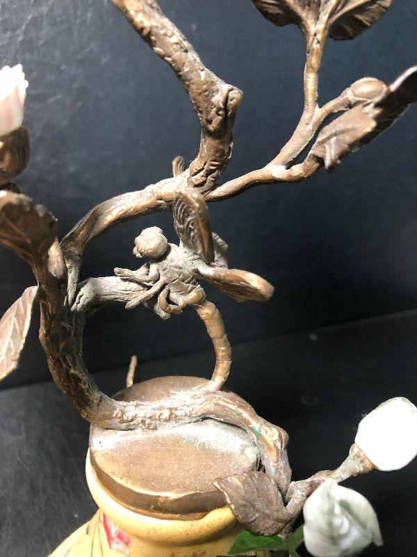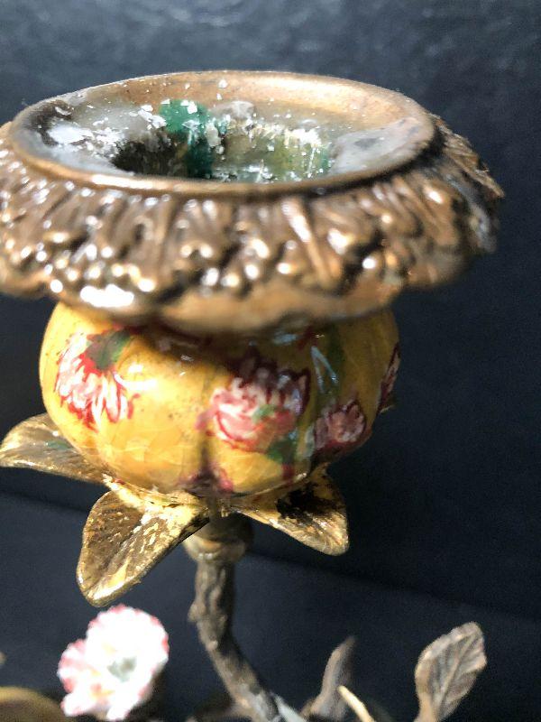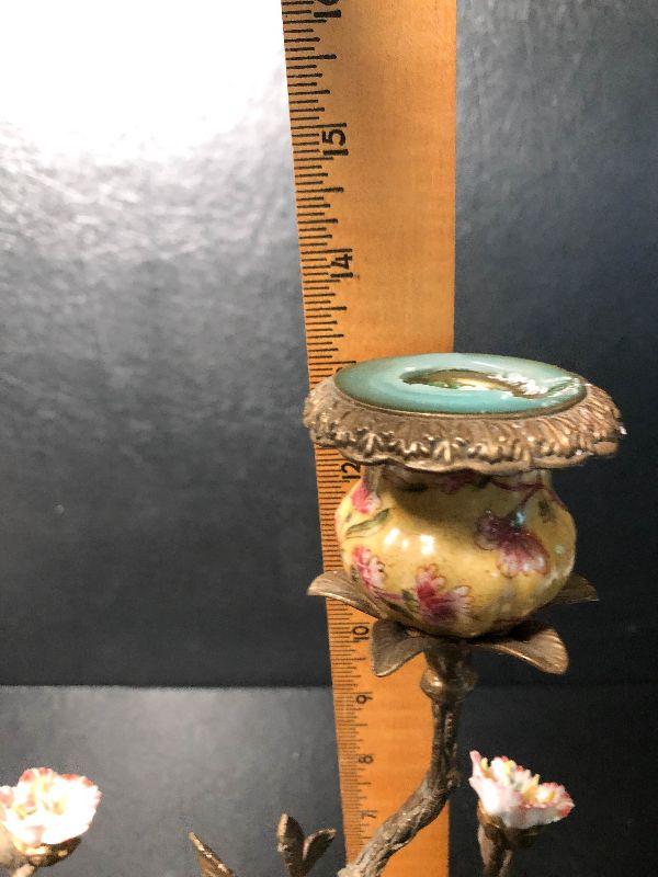 These candlesticks are getting harder to find in this wonderful condition. Crackle glaze porcelain bases with climbing intricate vines and dragonflies in the metalwork! Marked Mark Roberts. There is a matching vase being sold separately. These are perfect alone or as a set! Please see pics for condition of these beauties! Around 13 inches high!