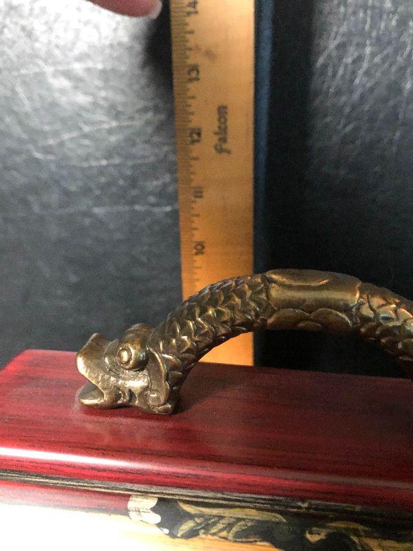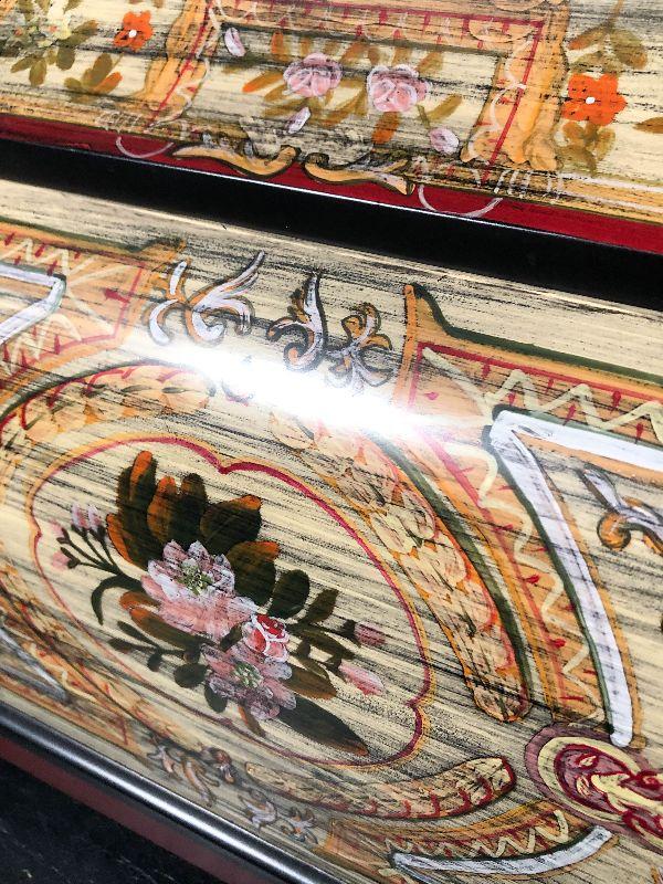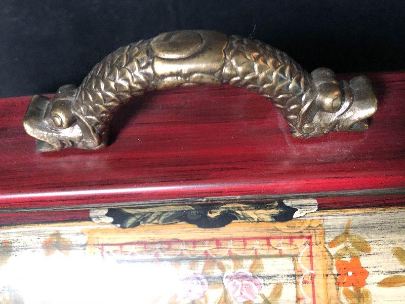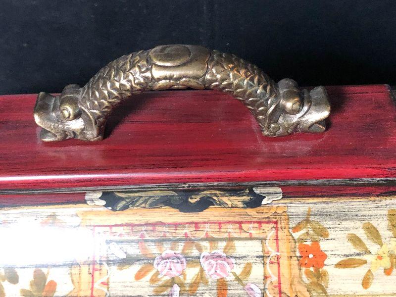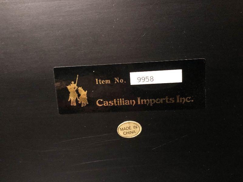 This gorgeous storage chest from Castilian Imports is a decorators dream! It measures 15 inches long and can be used in any room in the house for decor/storage. These pieces are hard to find in this beautiful condition and are highly desirable. Please see pics for detailed work and sizing!