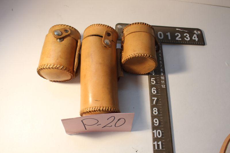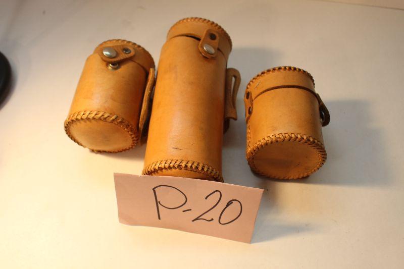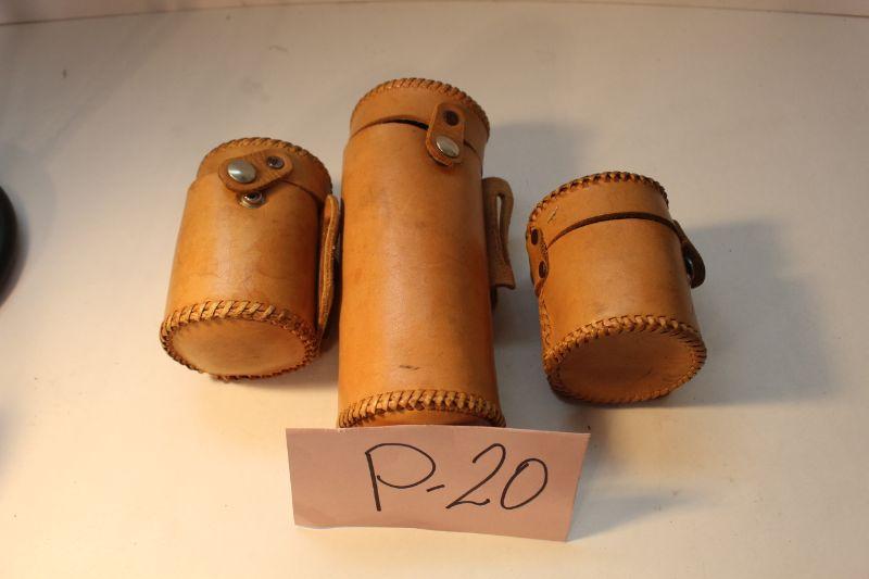 P20- Three Vintage Leather Camera Lens Holders/ Cases 4" to 8"