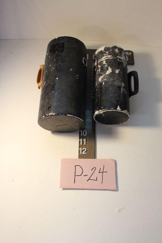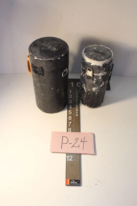 p24-Two Vintage Black Leather Camera Lens Made in Japan Holders/ Cases 8 1/2" to 9 1/2" tall x 4" to 5" diameter