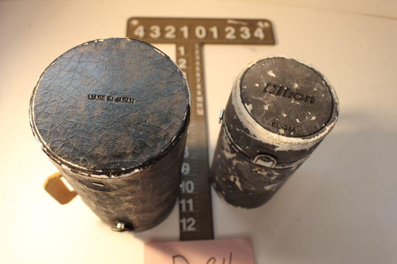 p24-Two Vintage Black Leather Camera Lens Made in Japan Holders/ Cases 8 1/2" to 9 1/2"  tall x 4" to 5" diameter