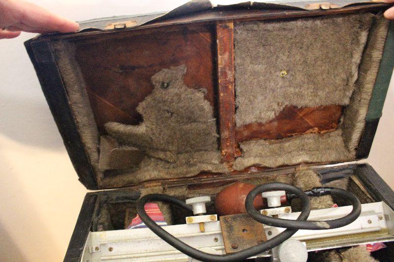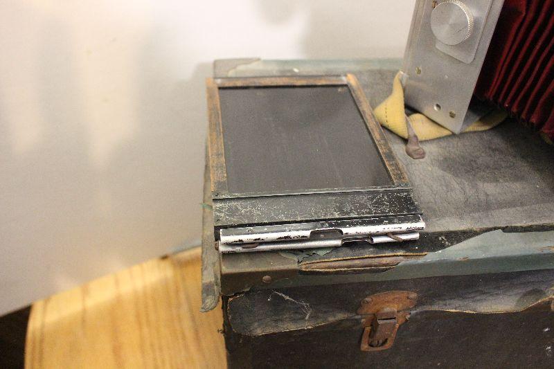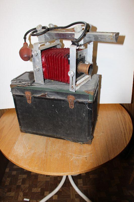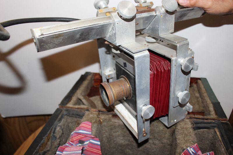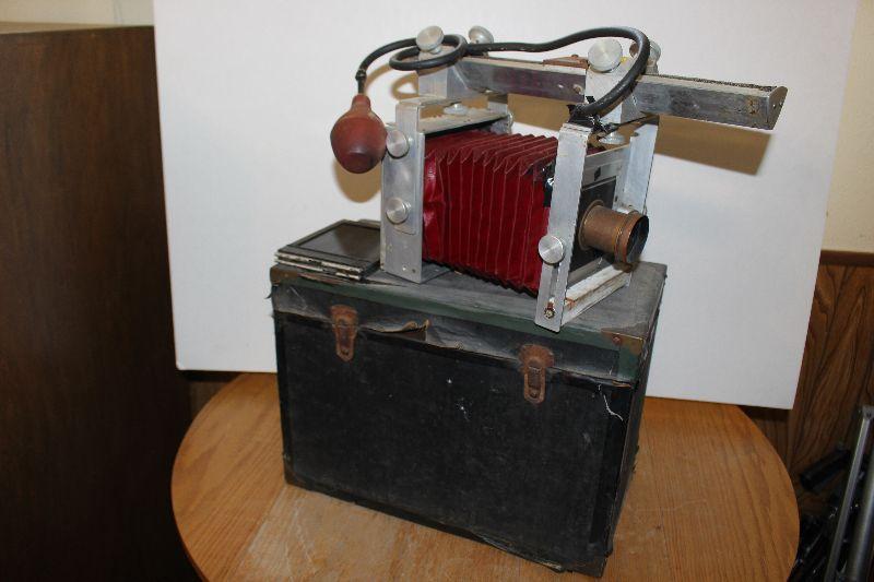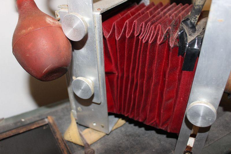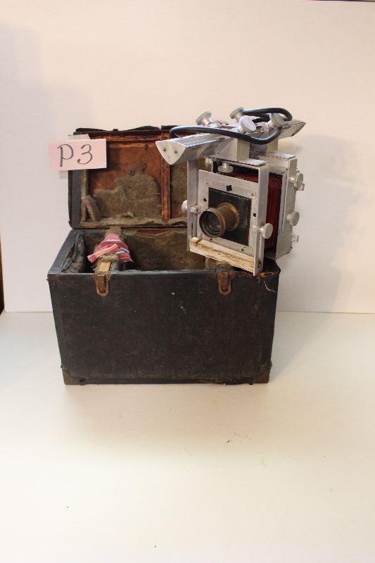 P3 Large Antique Folding Old Portrait Red Bellows Camera in Original Box -Untested