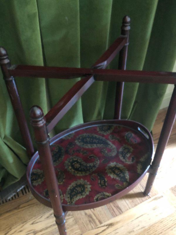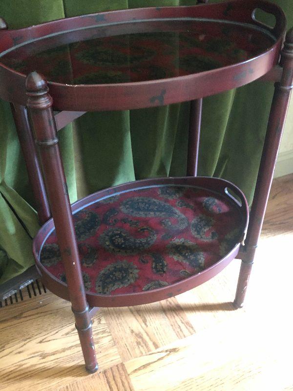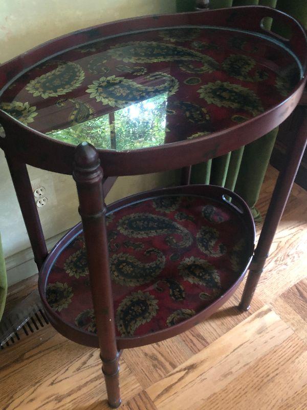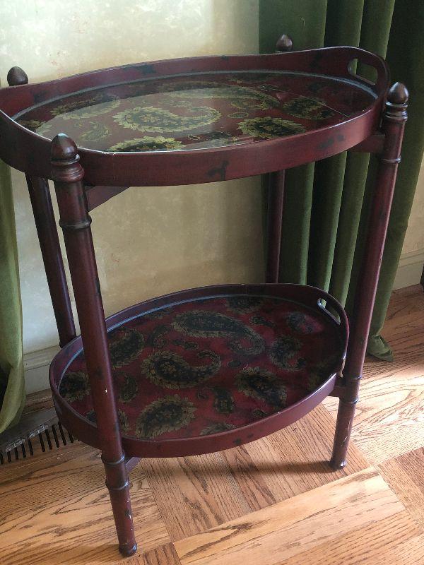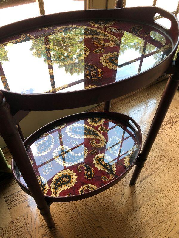 Beautiful dual removable tray table. Both trays have handles for easy handling. Serve your guests with style!