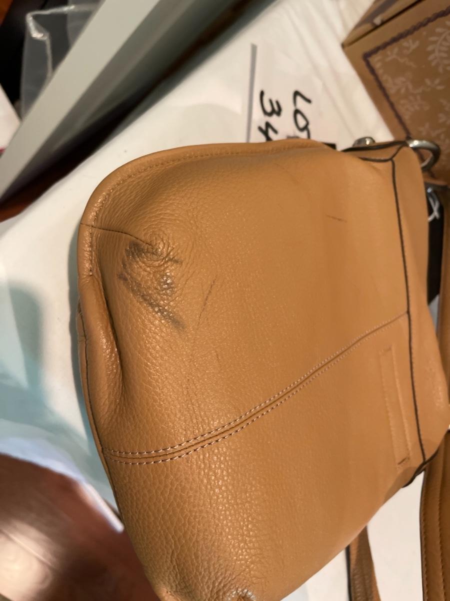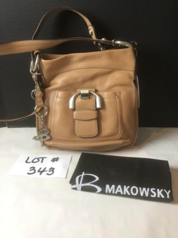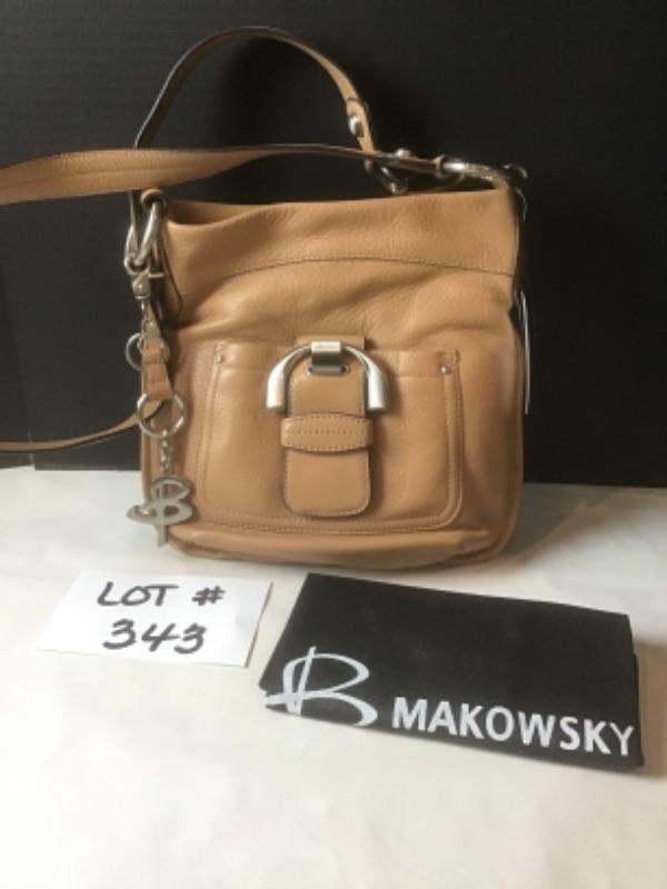 P343 New with tag Makowsky Brown Leather Bag bag has small black smudge on back.