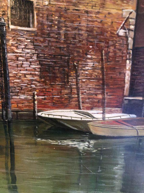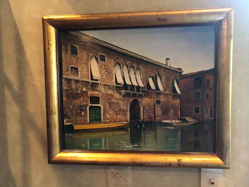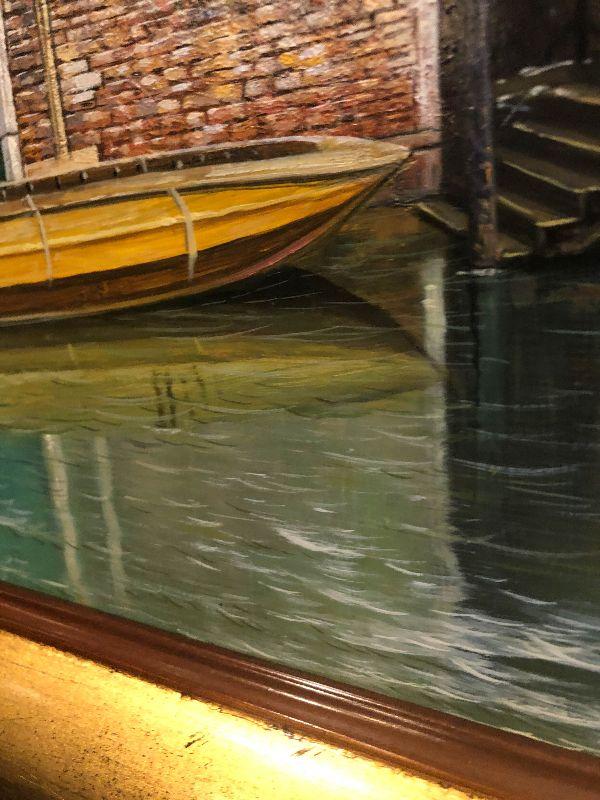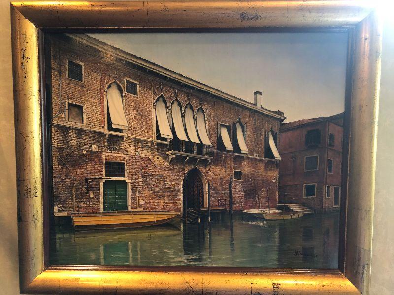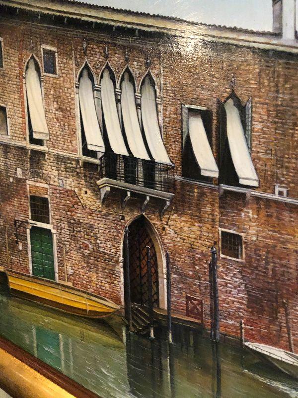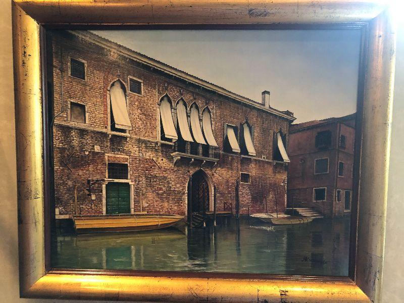 Beautiful Artwork. Contemporary painting done by Handprinted by A Sweands of Venice Scene. Please see all pictures for sizes, conditions and signatures, and marks. Pictures taken of front and back. Beautiful in person!