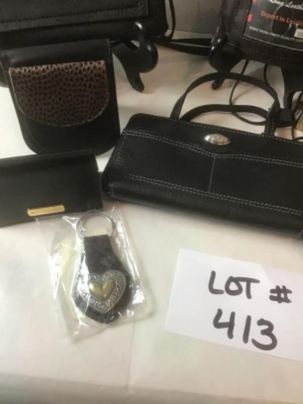 P413 Lot of St. John and 6pc. Misc Leather Wallets/ Handbag with new Coldwater creek key fob