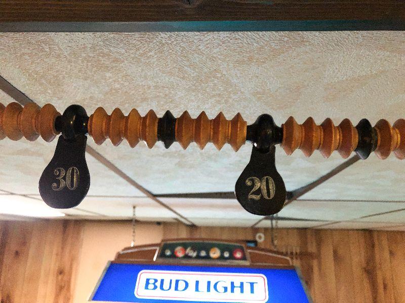 Pool table hanging strand score card. This will need to be removed from where it is hanging. Please see all pics for sizing and condition. Thank you for looking and have fun bidding.