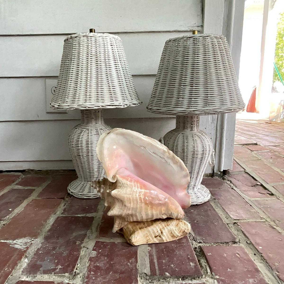 P635 Conch Shell Lamp/Night Light With Two Wicker Table Lamps