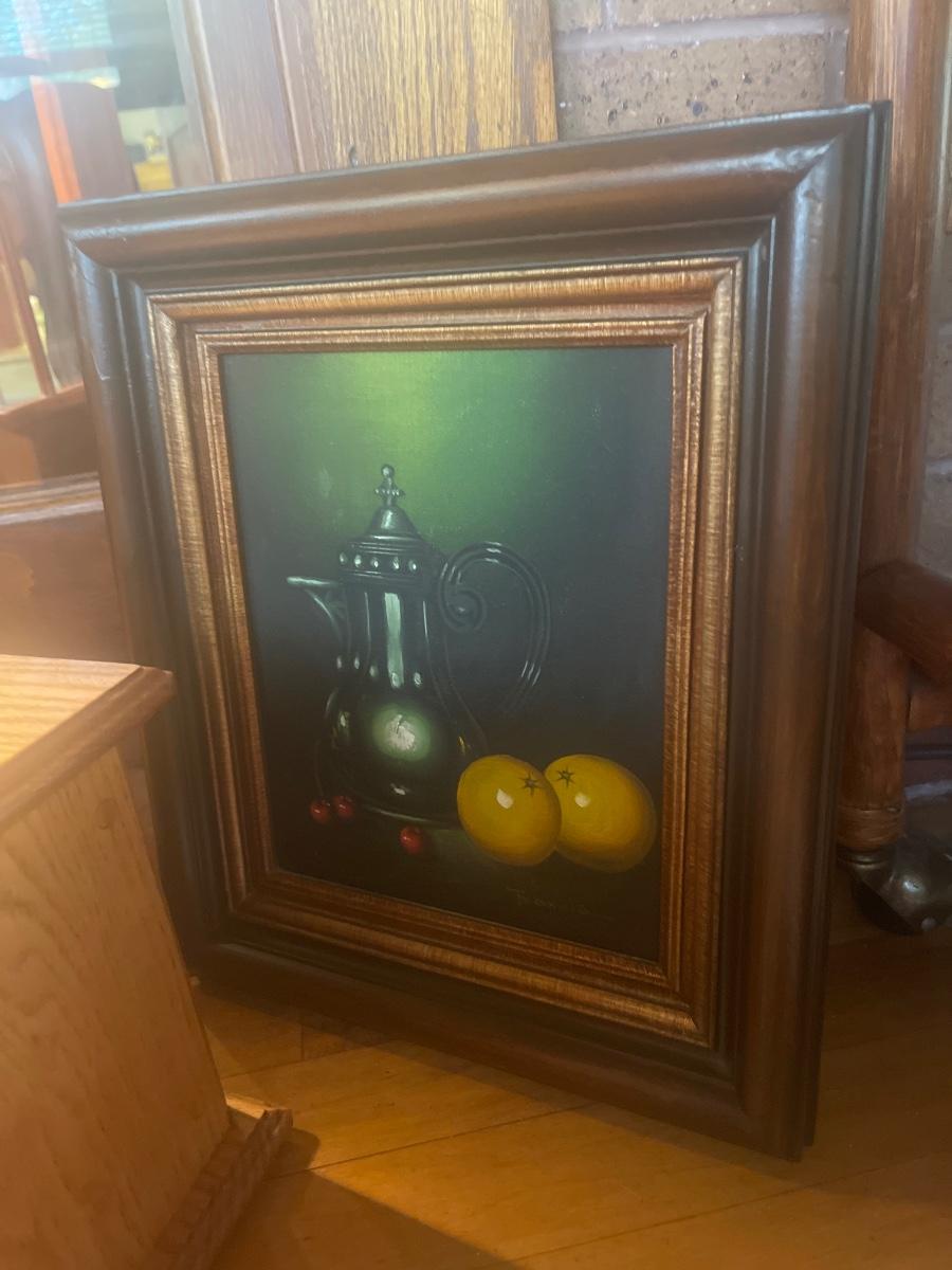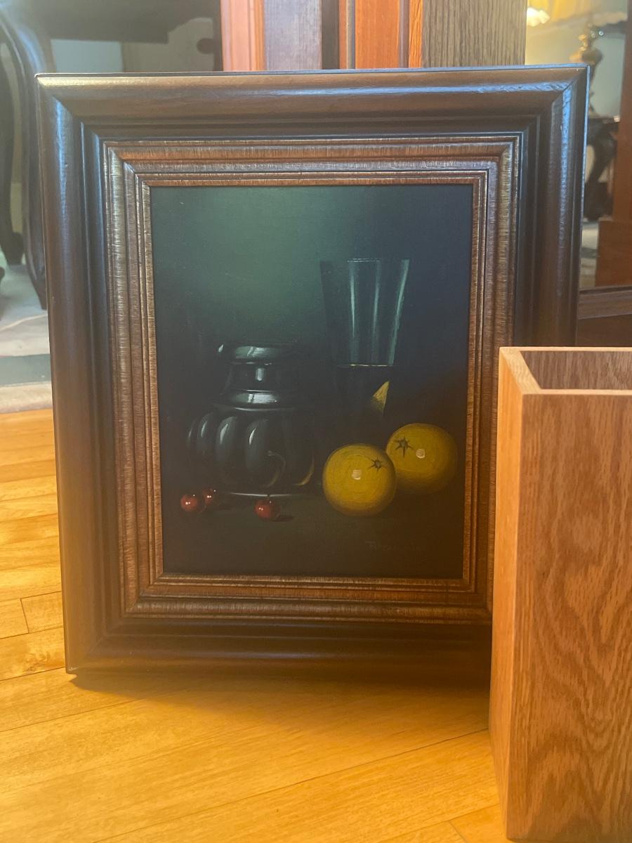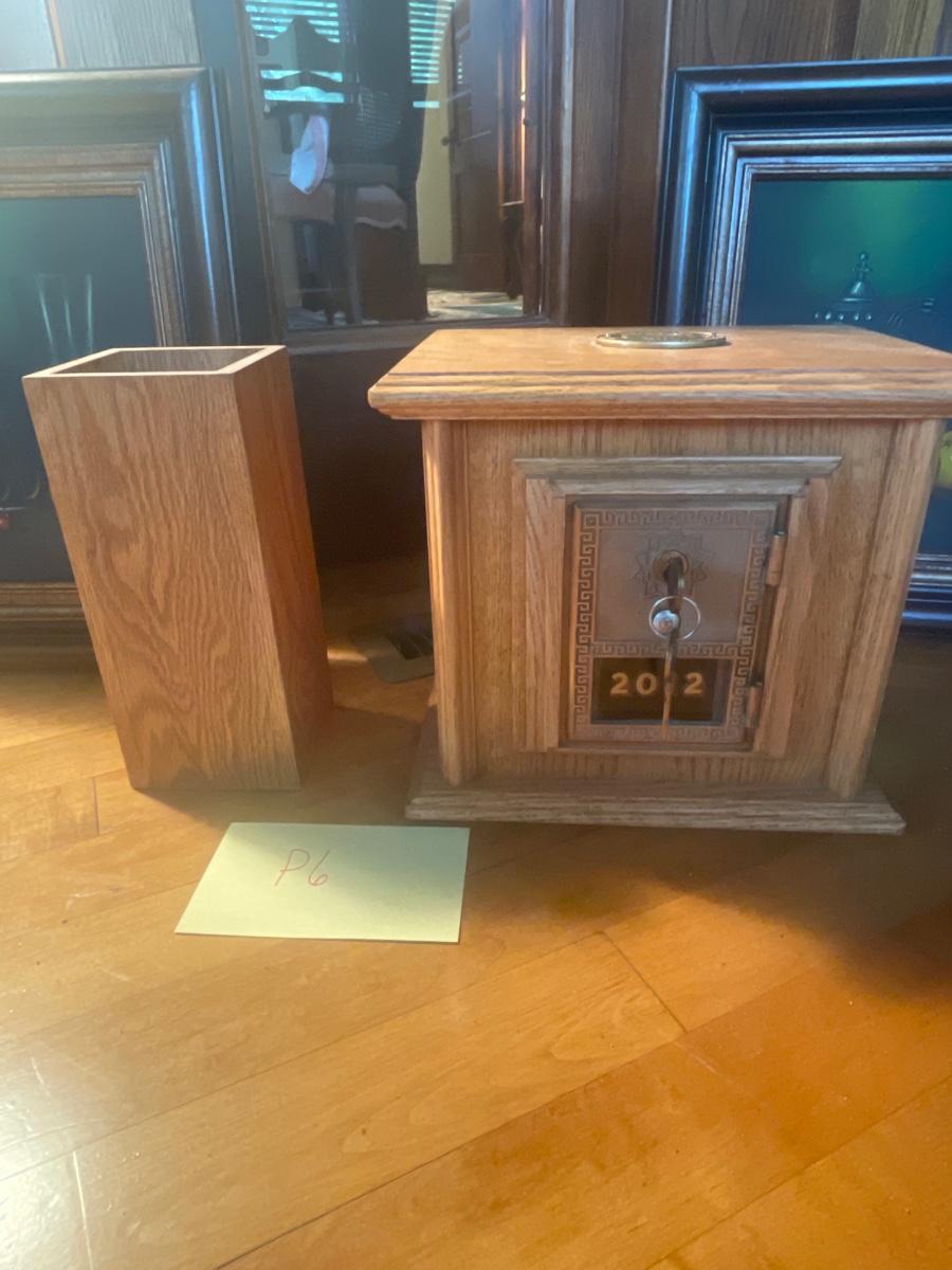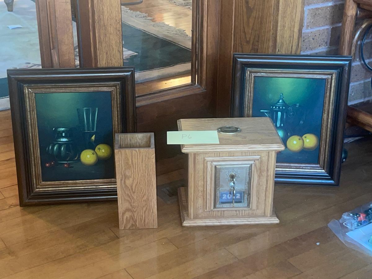 P6-Artwork pair and Wooden bank and vase