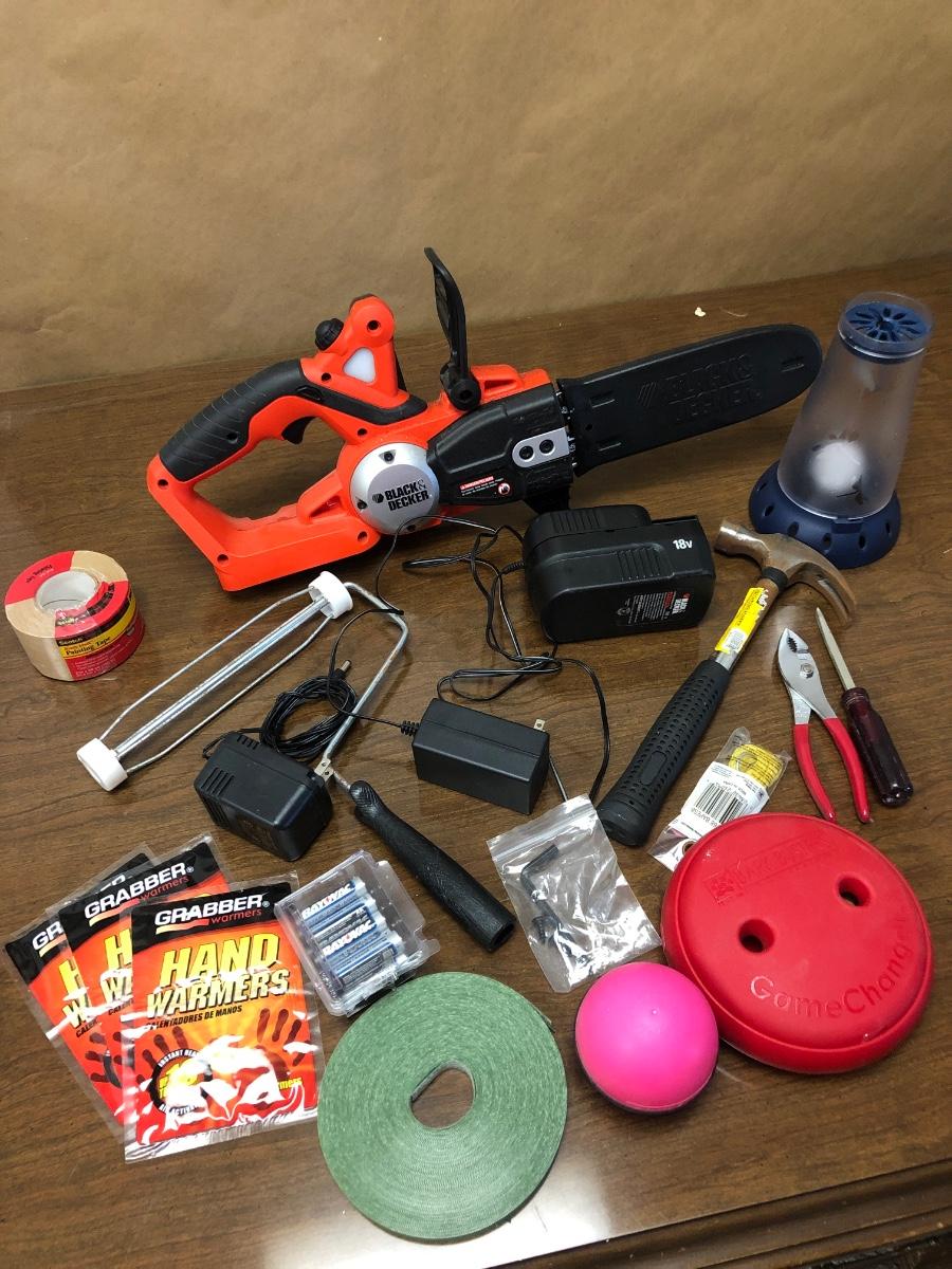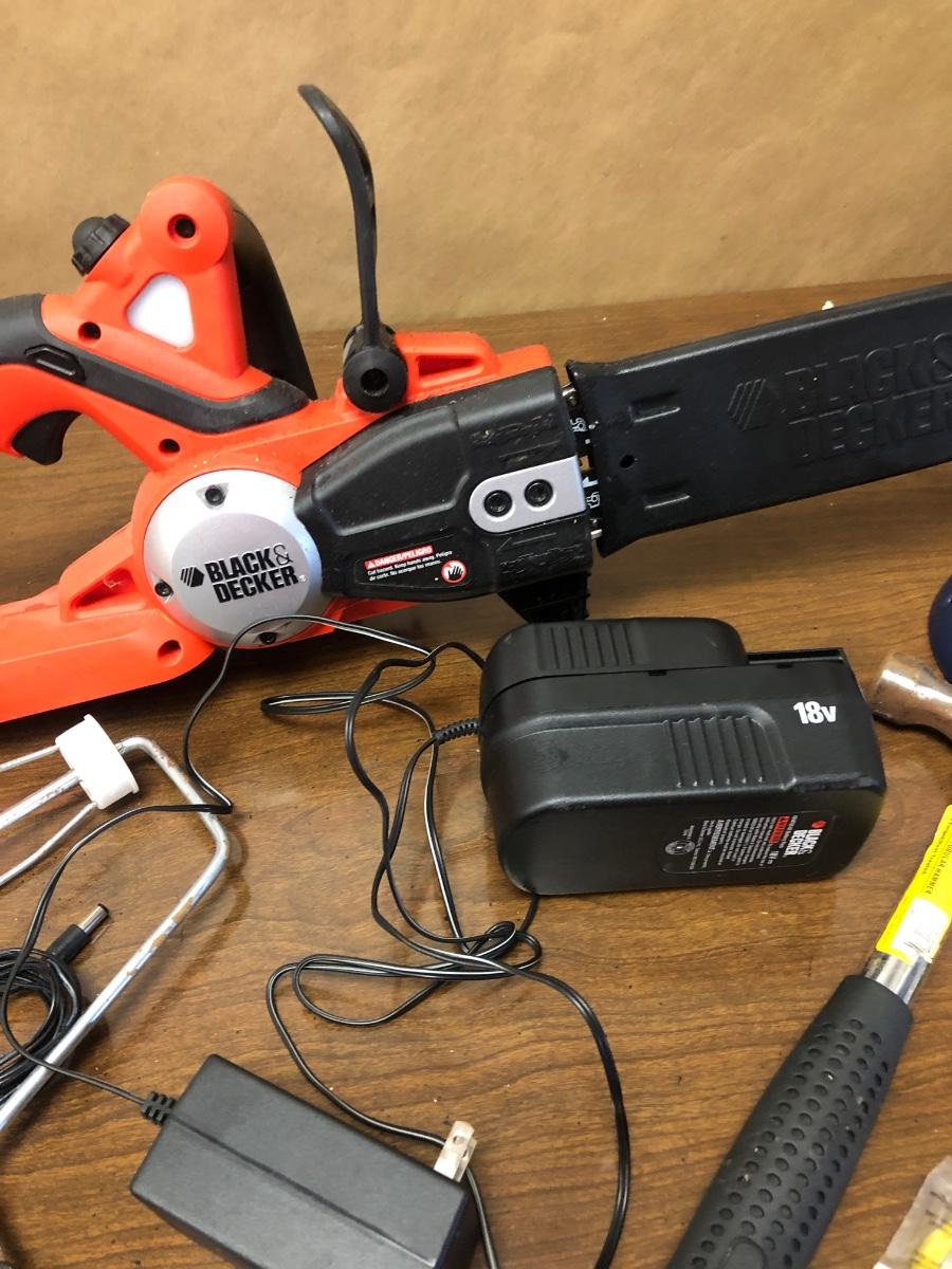 B Black & Decker mini chainsaw, appears to need a new battery. Won’t charge. Sold as is.
