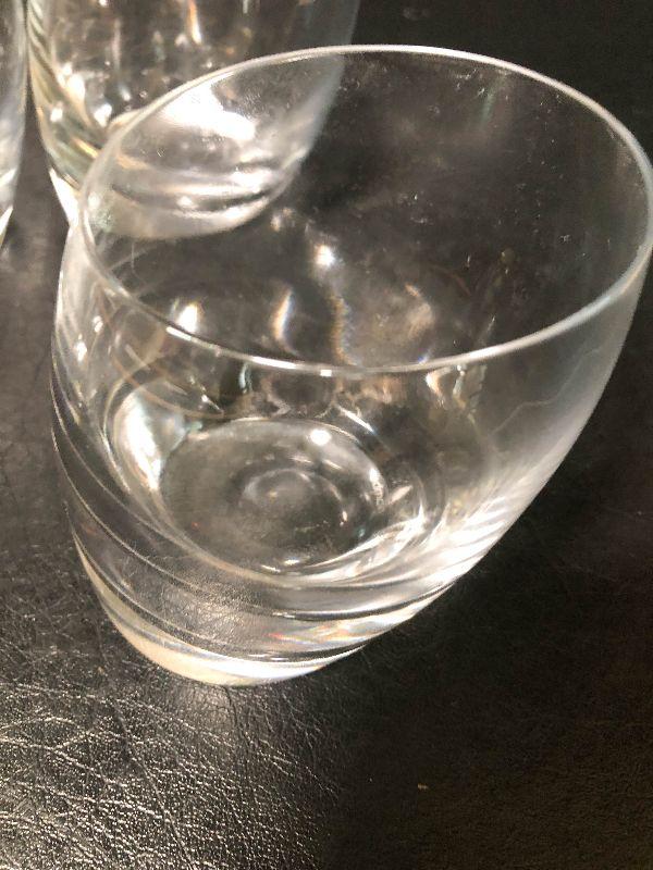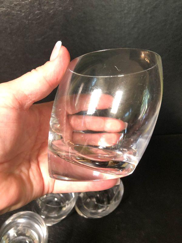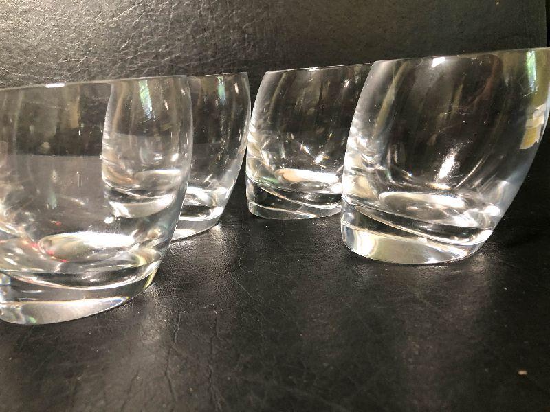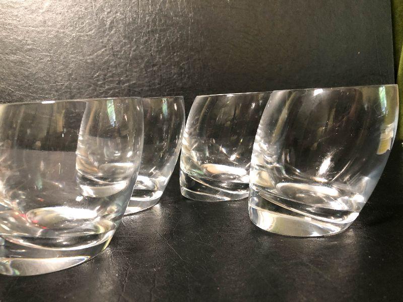 These glasses are a very desirable collectible glassware set. Set of 4 Nambe Tilt Double Old Fashion Glasses! Please see pics for condition and sizing. These are even prettier in person!