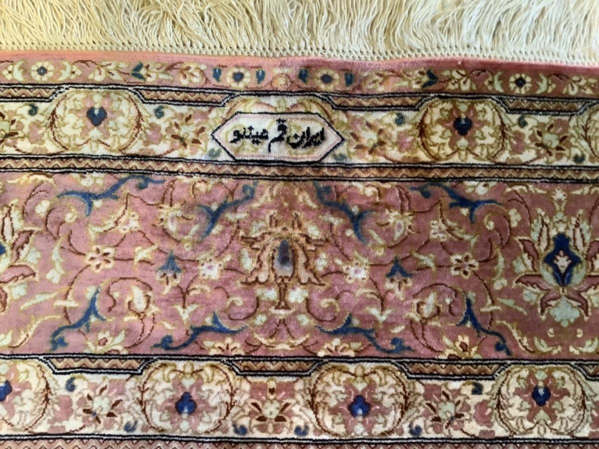 Beautiful Signed Persian hand knotted silk Ghoum Silk Rug