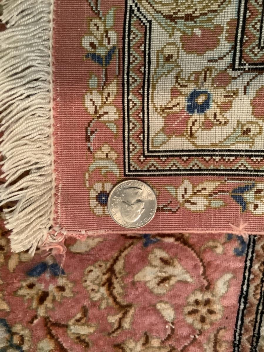 P967 Hand Knotted Persian  Signed Ghoum Silk Rug 7’ x 4’