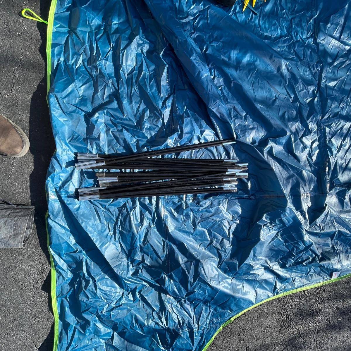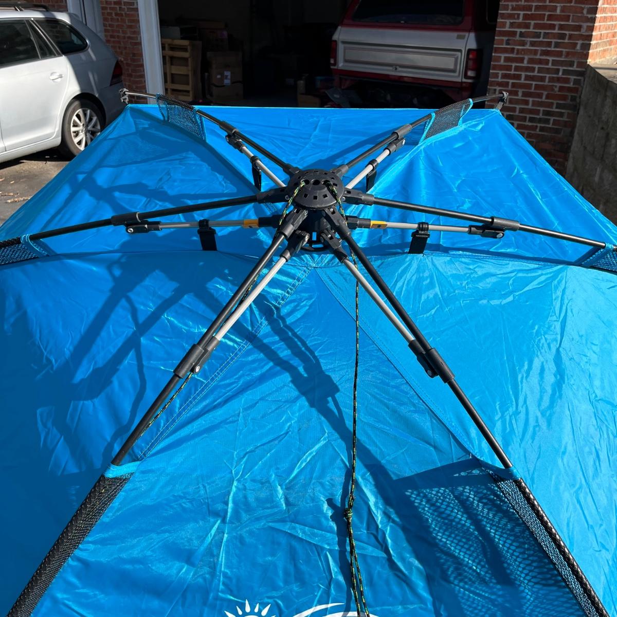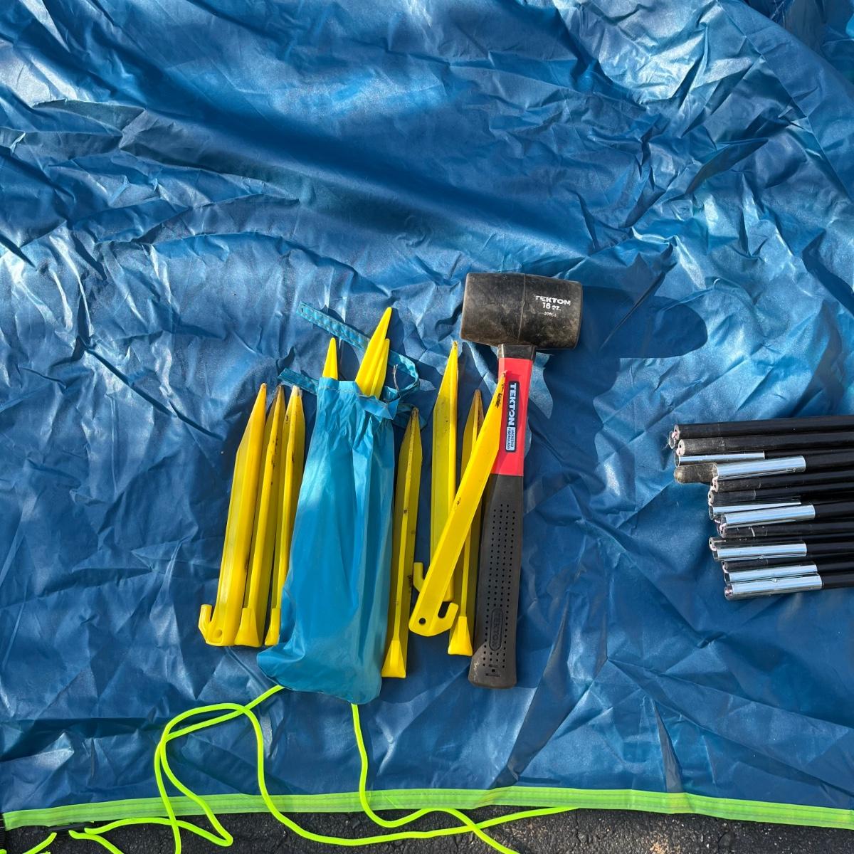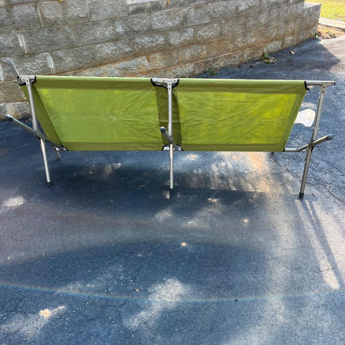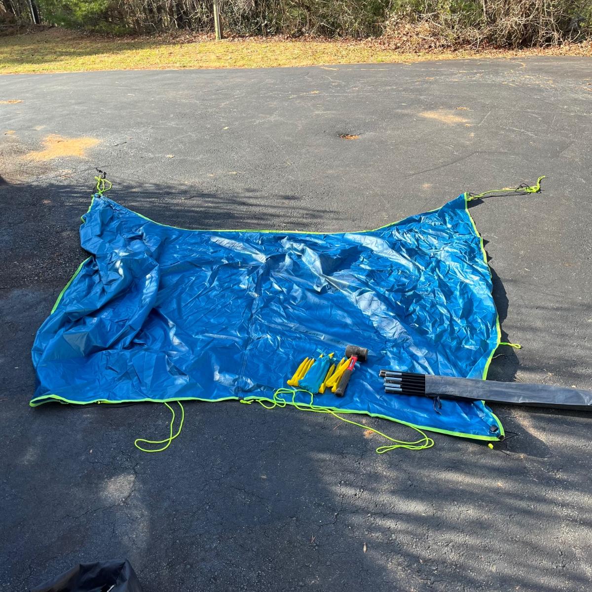 Lot includes a Pacific Breeze beach tent, Ozark Trail folding cot, Quest sleeping bag and a vehicle tent. Beach tent measures 95” x 50” x 55”.