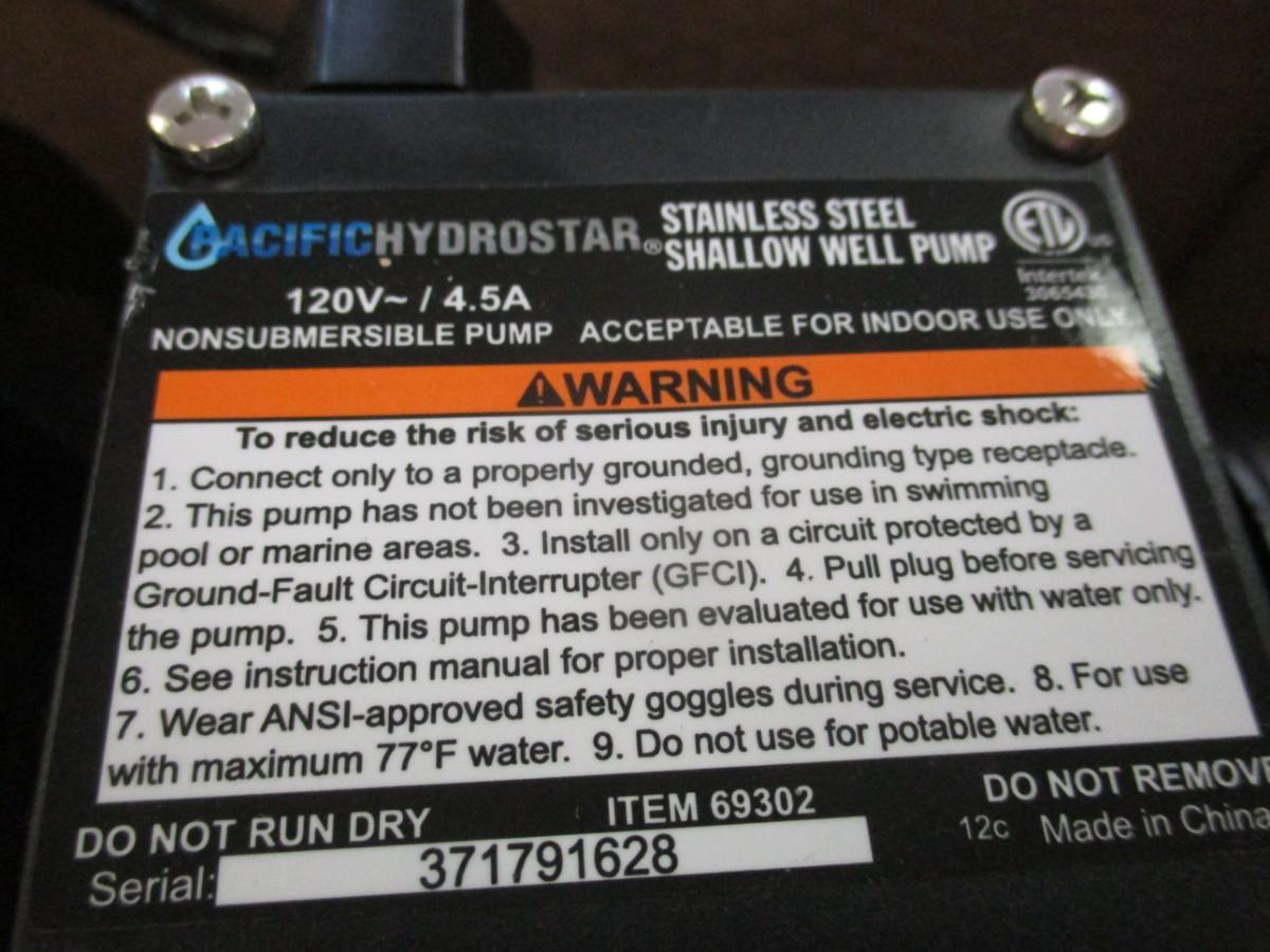 Pacific Hydrostar 1 Horsepower Shallow Well Pump Looks New