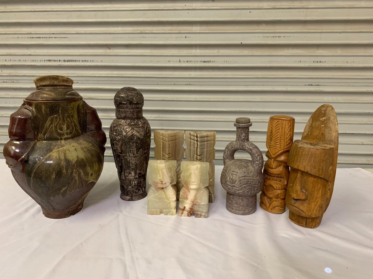 9 Piece Lot (stone, Wood, Metal, Pottery)