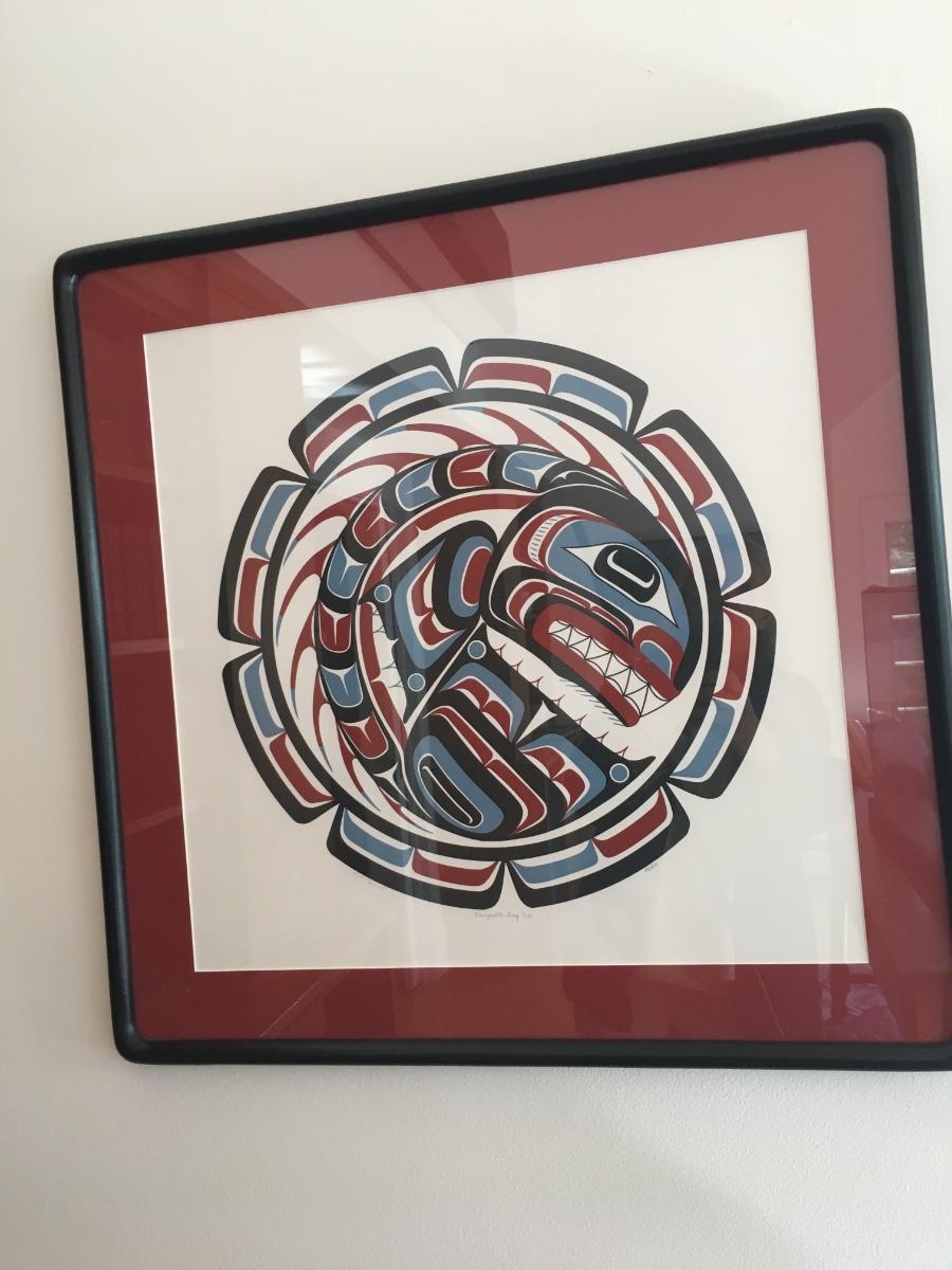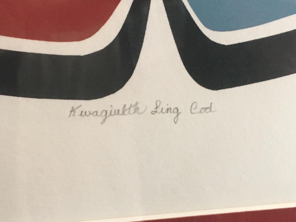 Kwagiulth Ling cod silk screen print. Square frame. Signed by the artist.
