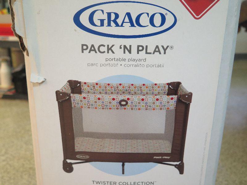Graco Pack N Play, like new in box. Please read Terms and Conditions before placing a bid. Pick up is Friday, October 25th between 4 and 7, and Saturday, October 26th between 9 and 1. Props included in photos are not included in listing. All measurements are approximate. Comes from home with cats.