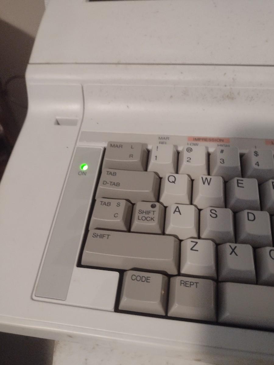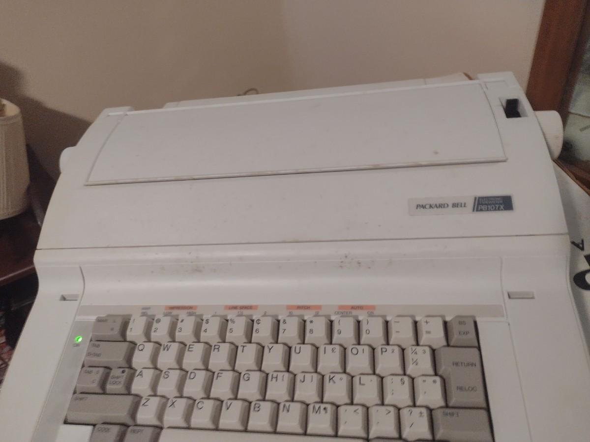 Packard Bell Electric Typewriter PB10TX. Turns on. keyboard cover has a broken tab as shown.