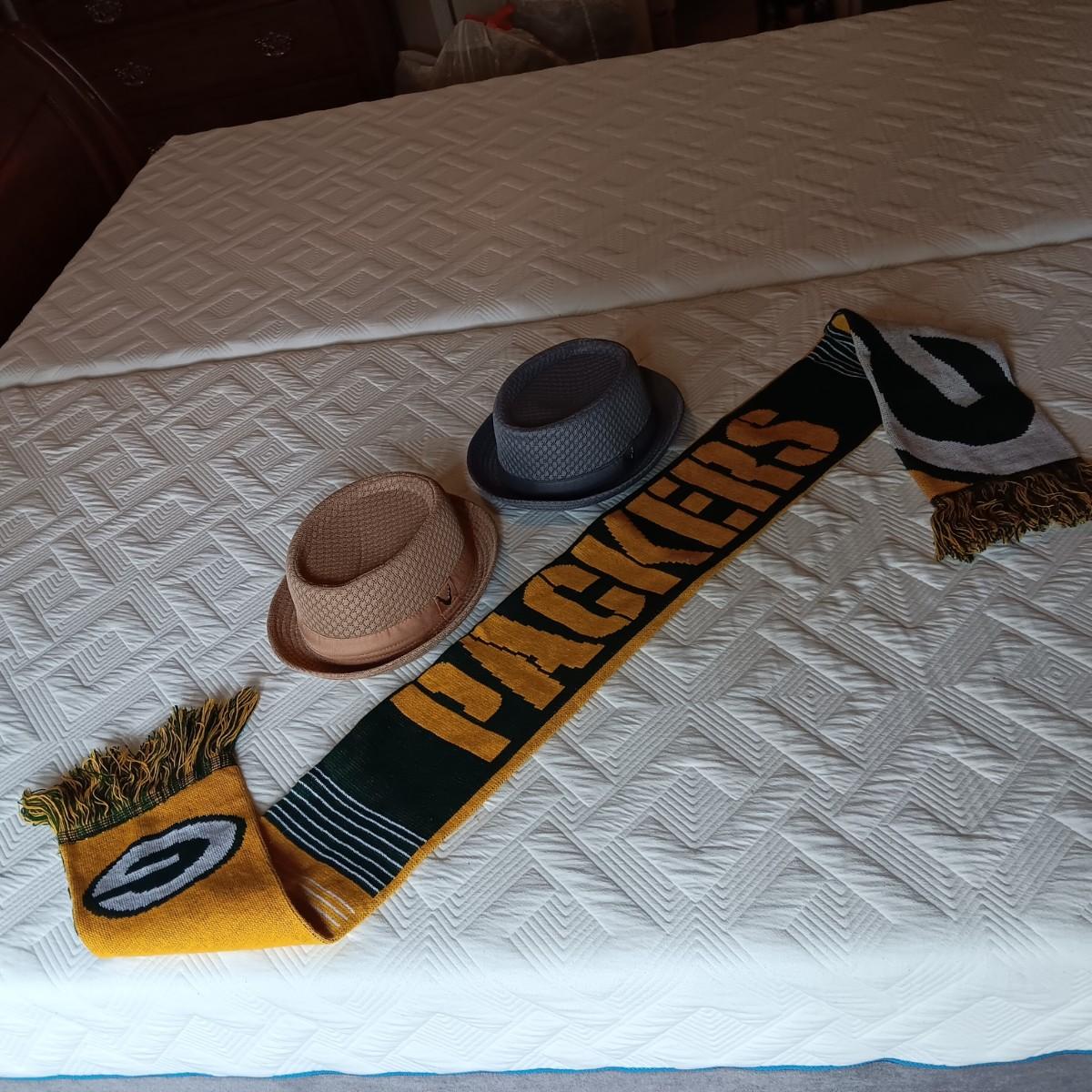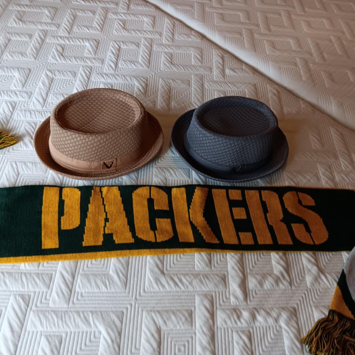 PACKERS KNIT SCARF AND VANS BEANIE PLUS 2 DRESS HATS (S/M)