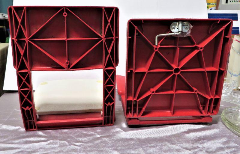 2 Red Padded Hard Plastic Seats for Boats, Stadium Sports, Travel, Canoe more Foldable to save space. In Good Condition.
