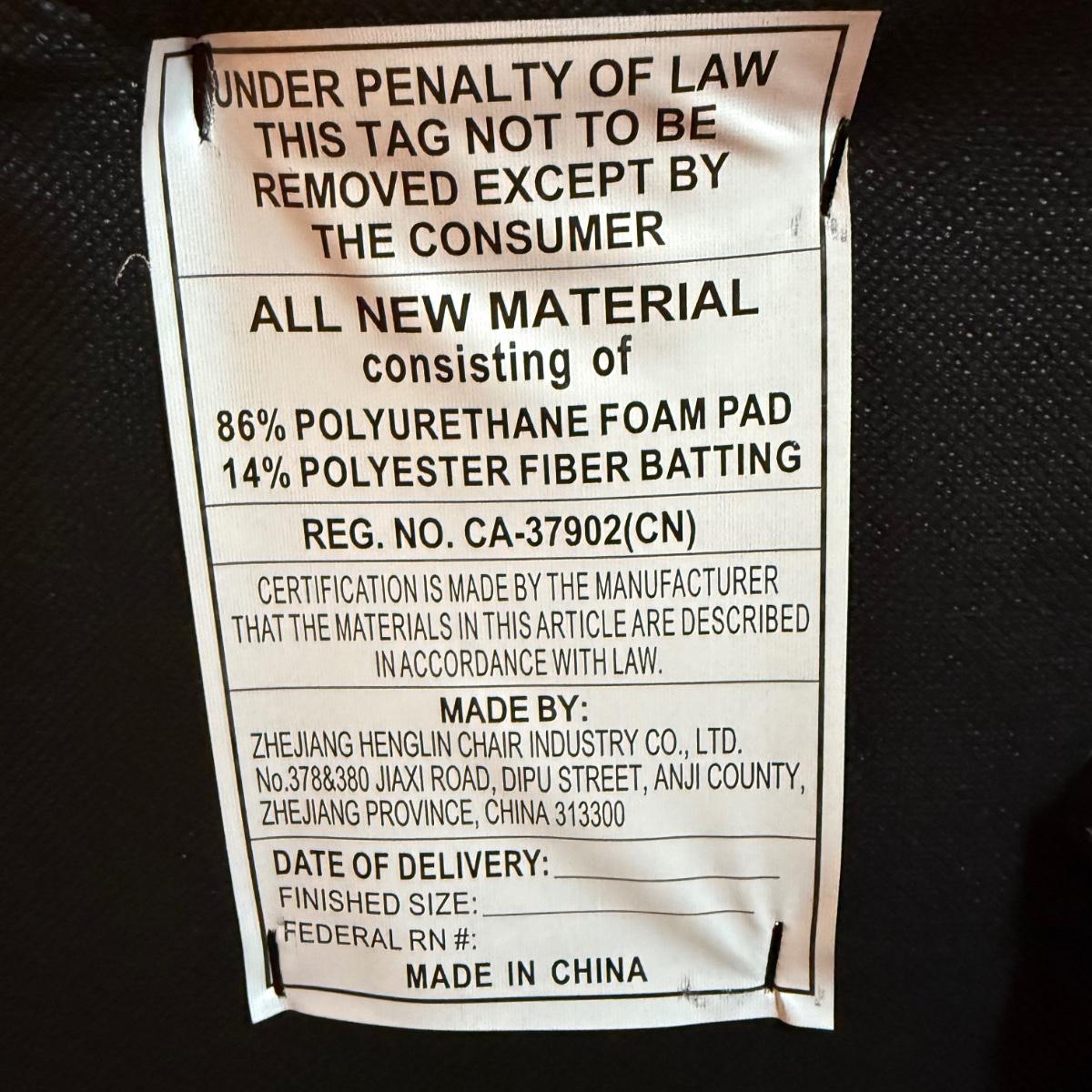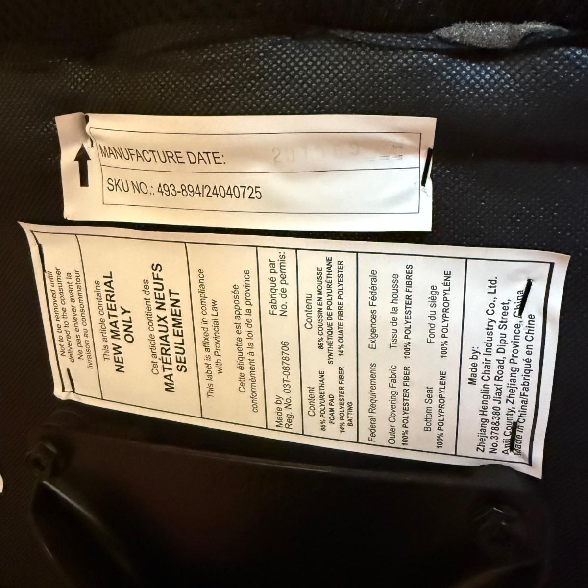 This padded and upholstered office chair has adjustable height. Chair measures 27” x 29” x 46”H with a seat height of 21” H at its tallest and 18” seat height at its lowest.