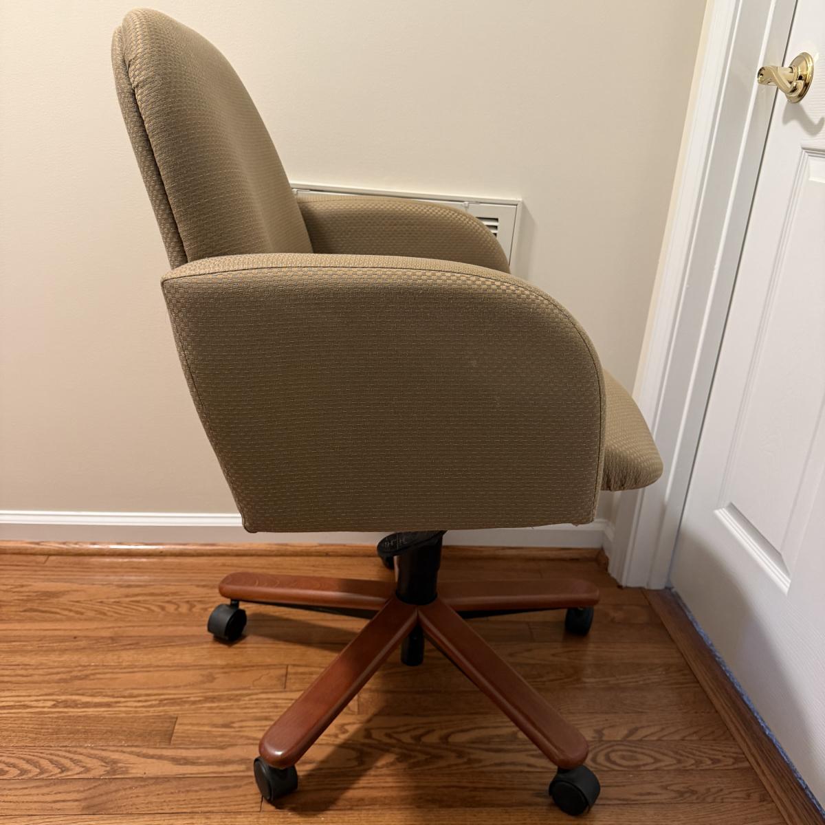 Lot includes a padded upholstered office chair with adjustable seat height. Chair measures 26” x 22” x 37”H with 20”seat height at full height.