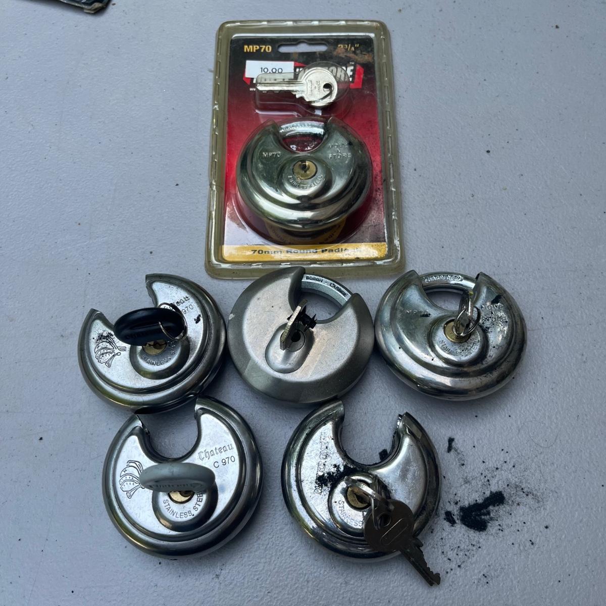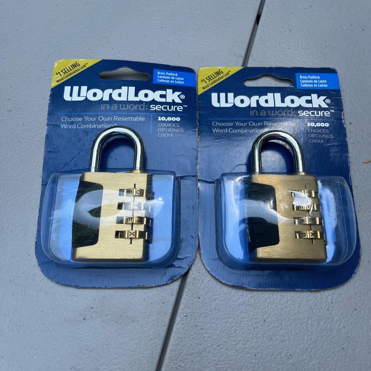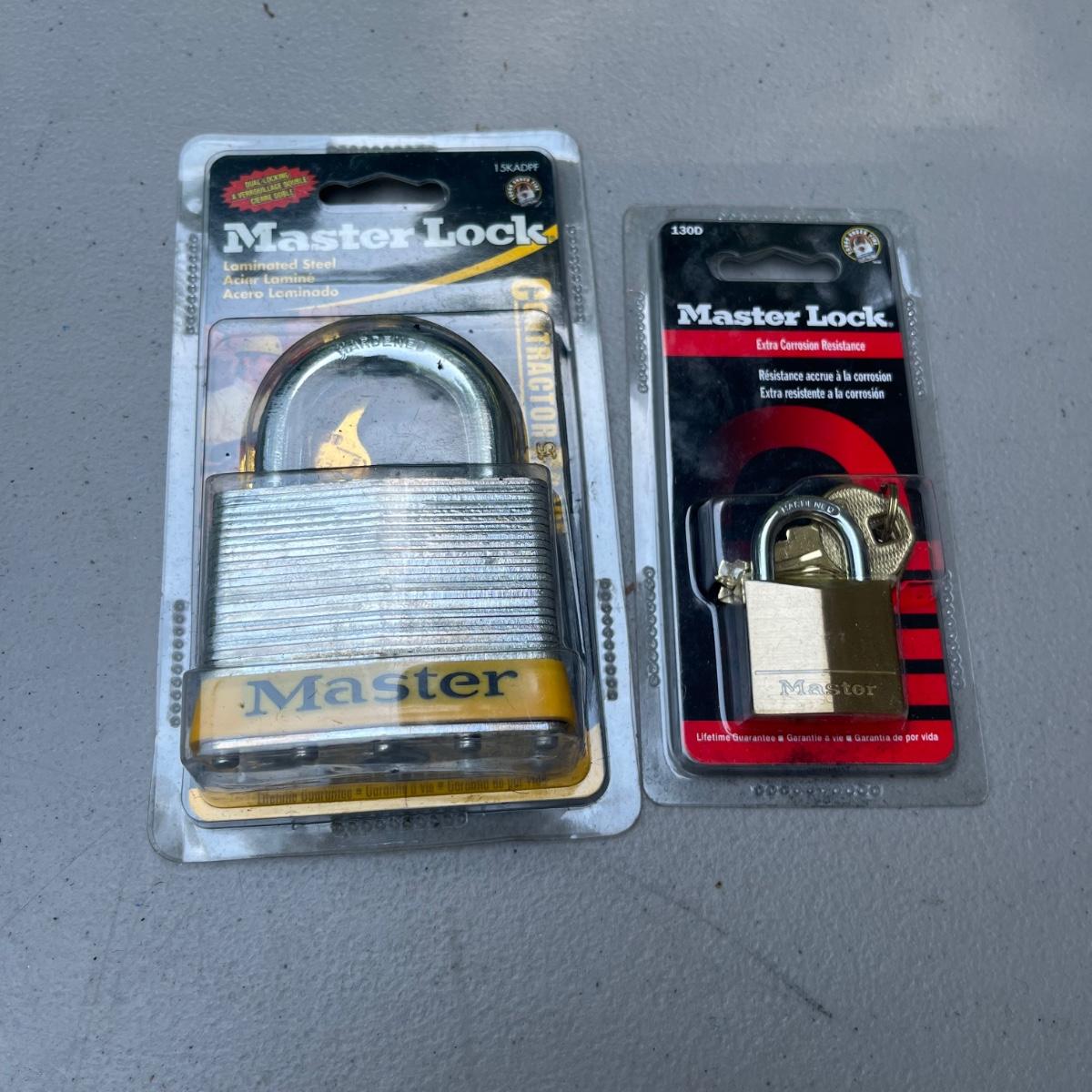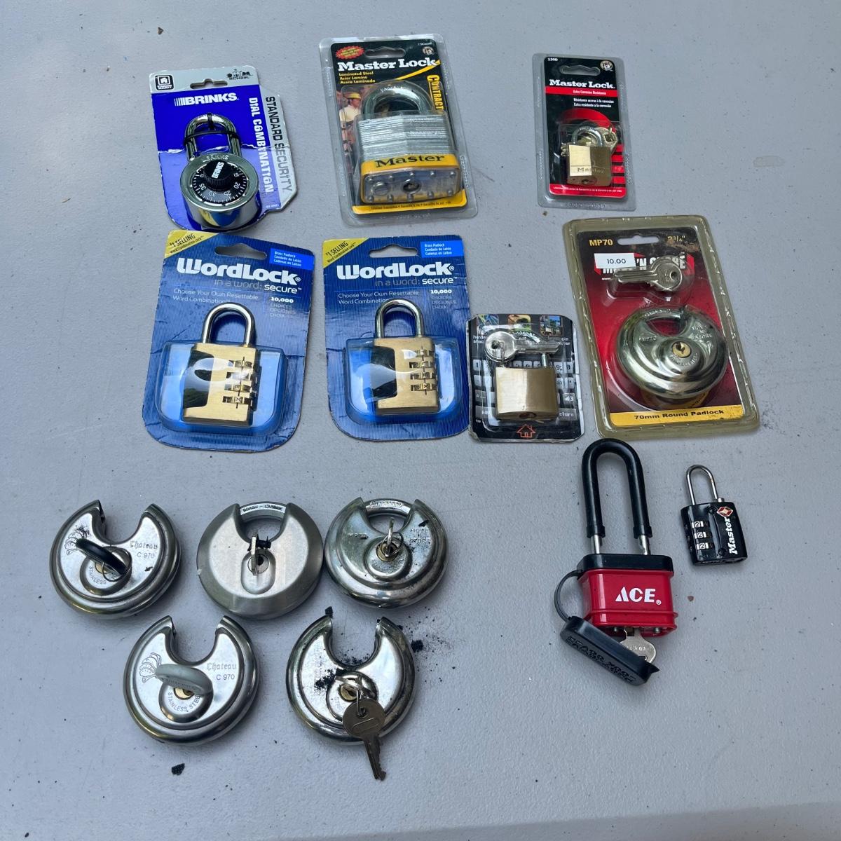 Lot includes two Master key locks, two Wordlocks, six self storage locks, two combination locks, and two key padlocks.