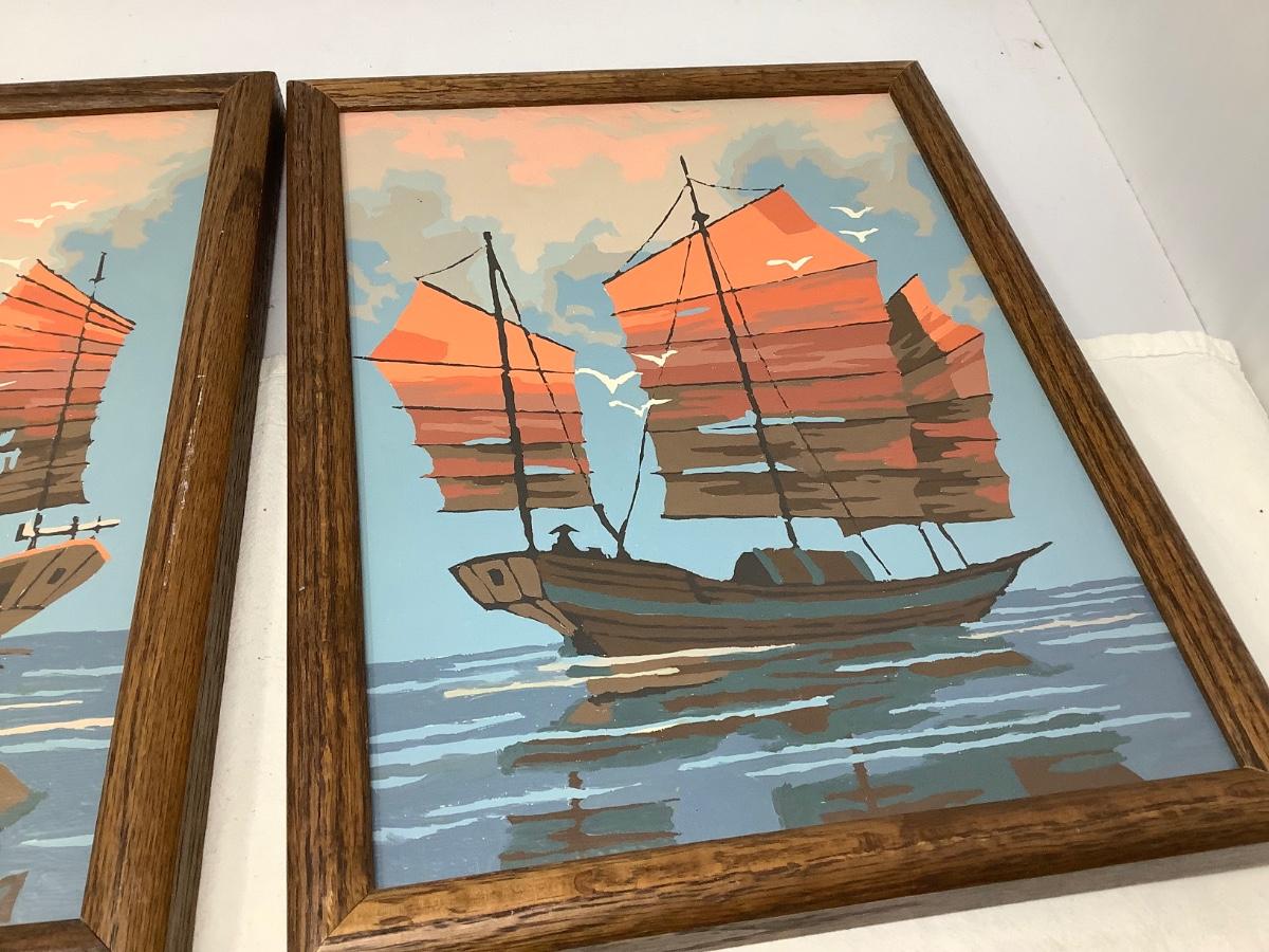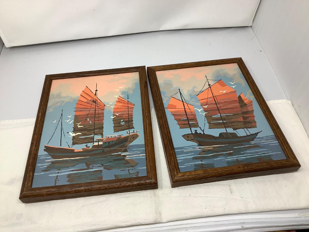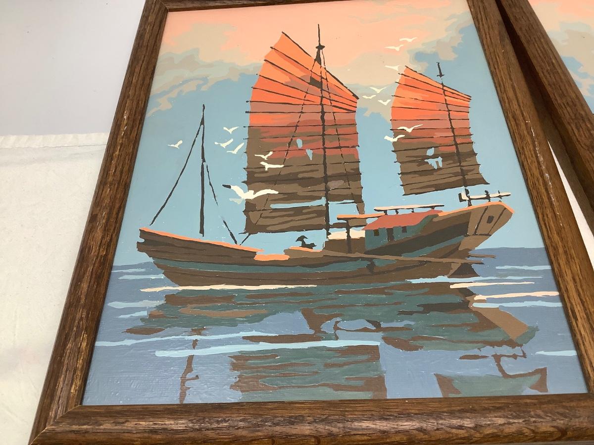 You get a set of two Asian art paint by number pictures. They have wood frames and are two Asian boats. Very nice.