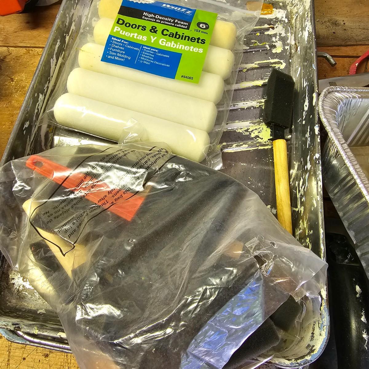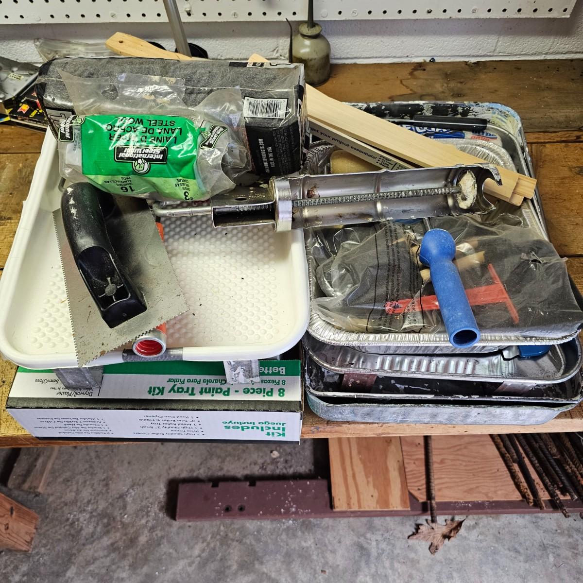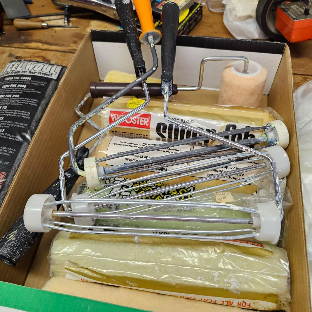 Trays, rollers, covers, drop-cloths & more. Steel wool, drop cloths, foam brushes. See photos for details. Local pick up only.
