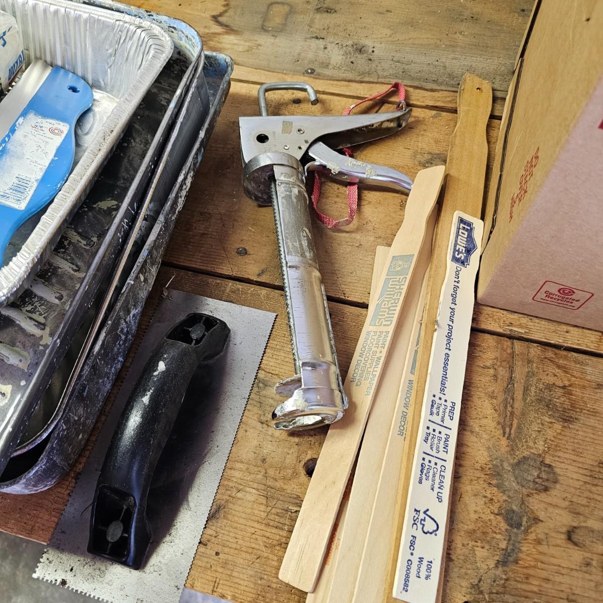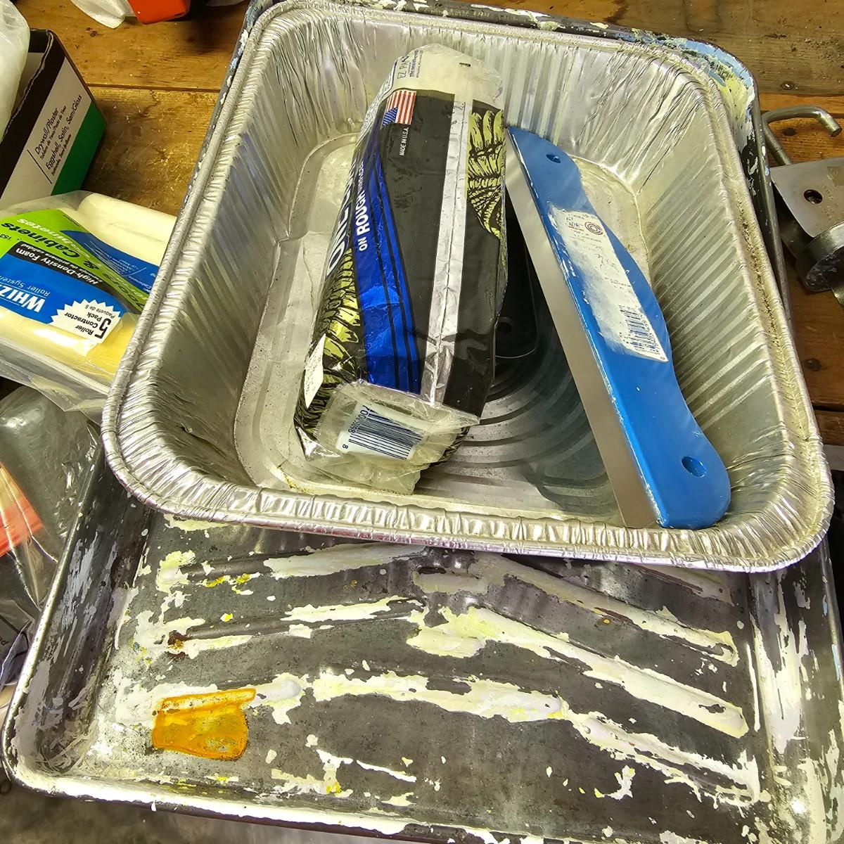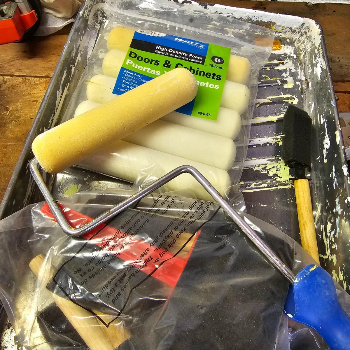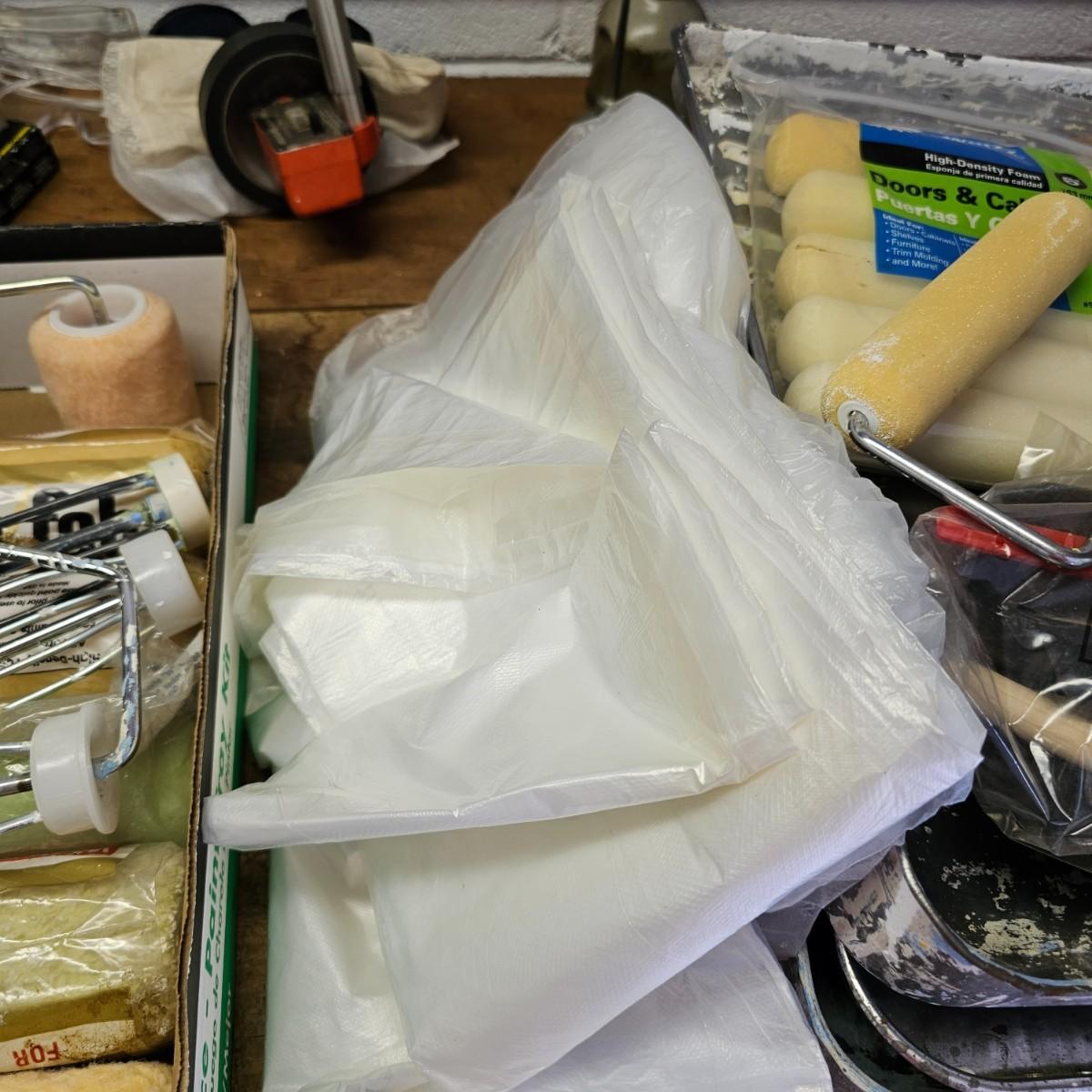Trays, rollers, covers, drop-cloths & more. Steel wool, drop cloths, foam brushes. See photos for details. Local pick up only.