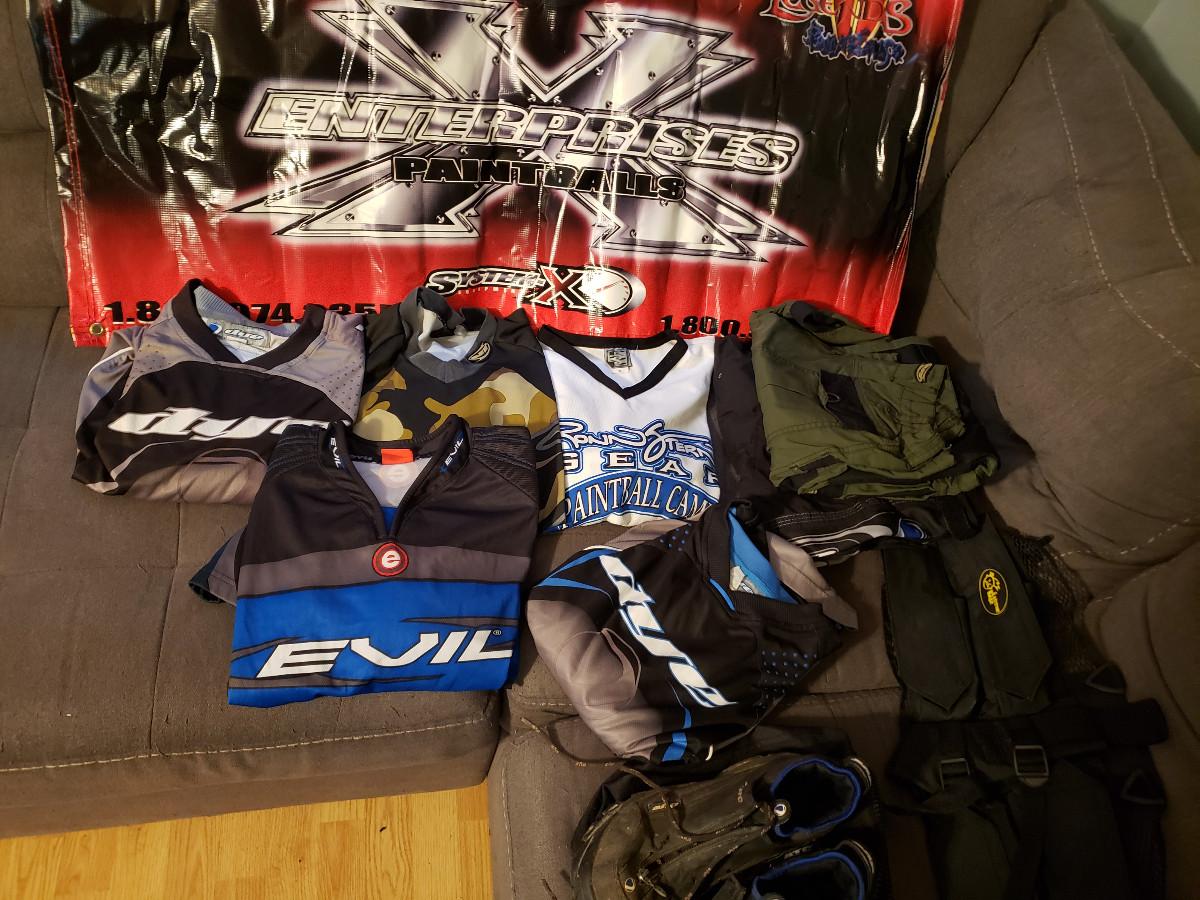 Lots of clothing, protective gear, and other accessories. See pictures for details.