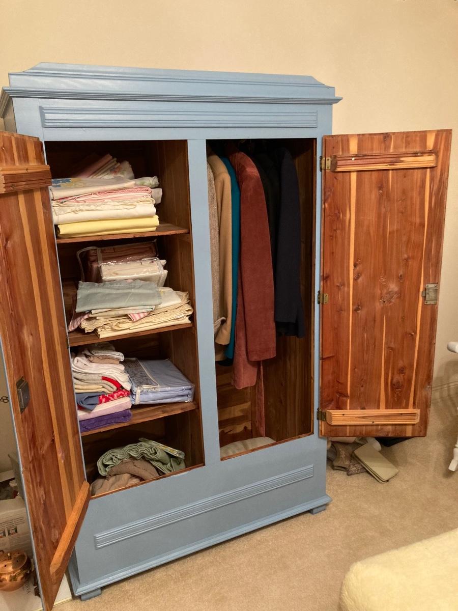 Vintage Painted 2 door cedar robe.  47 1/4”w x 21 1/2”d x 66”h