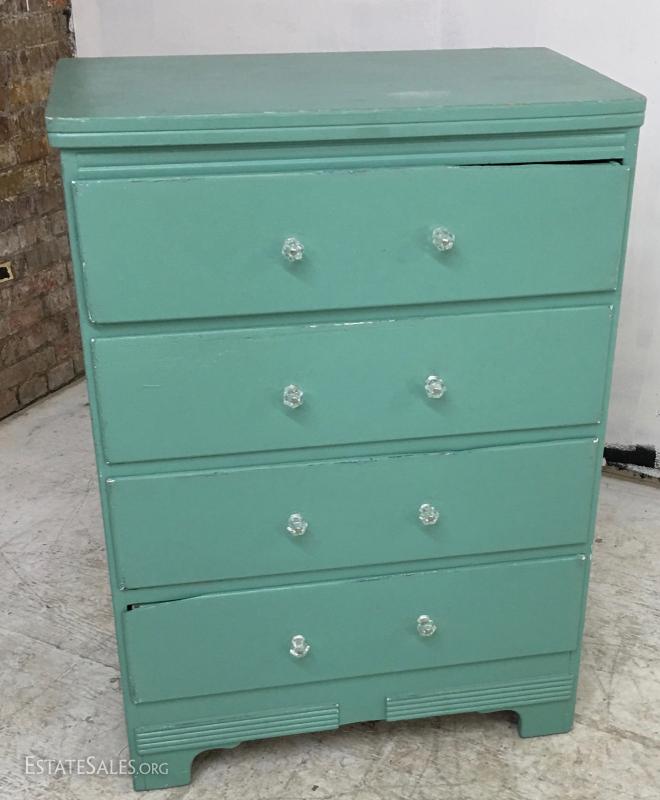 Painted 4-Drawer Chest of Drawers Glass Knobs